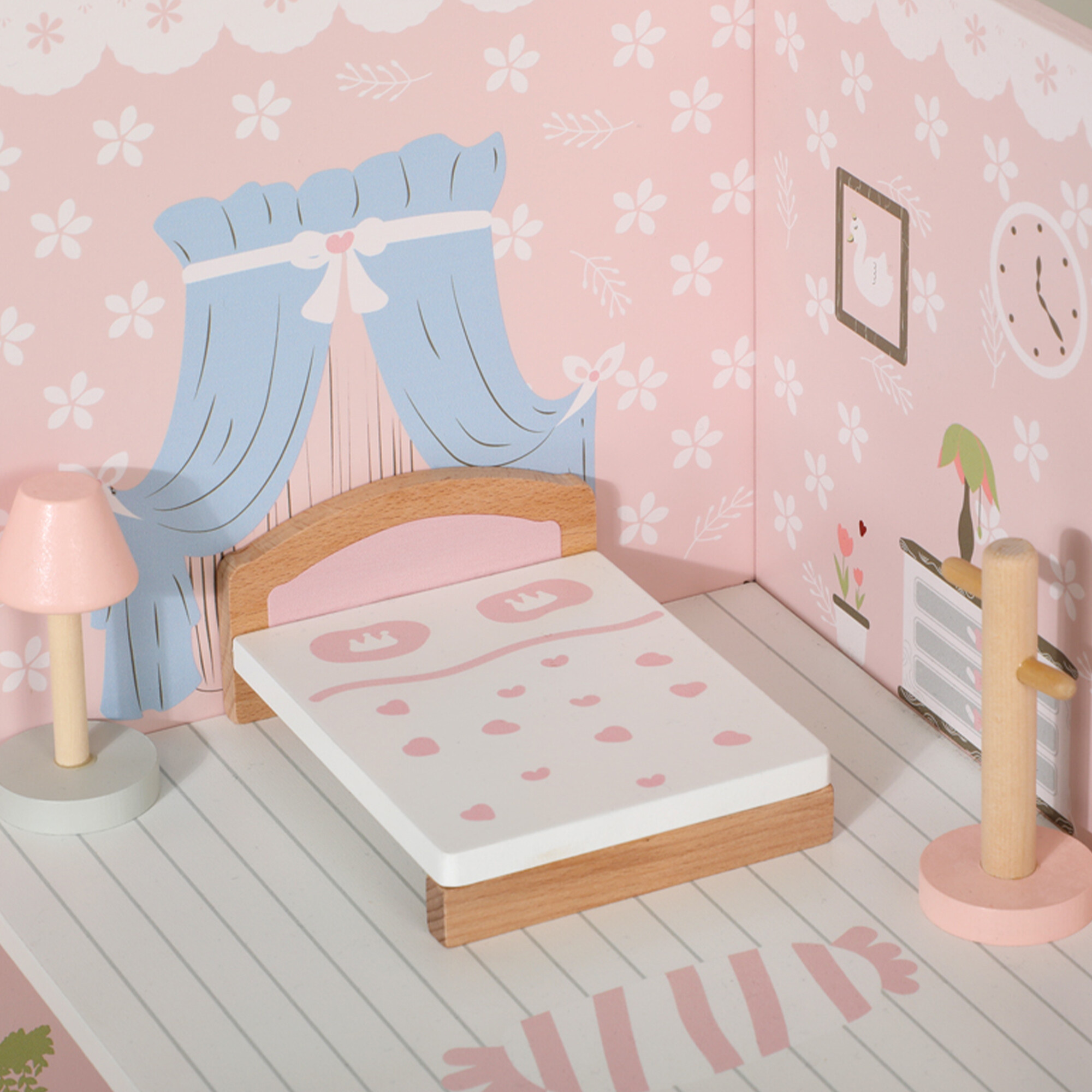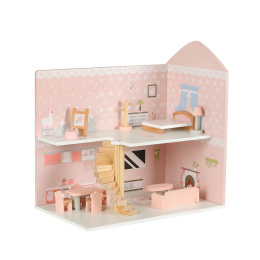 Domek dla lalek w jasnych pastelowych kolorach, przeznaczony dla wszystkich małych księżniczek i ich przyjaciół.