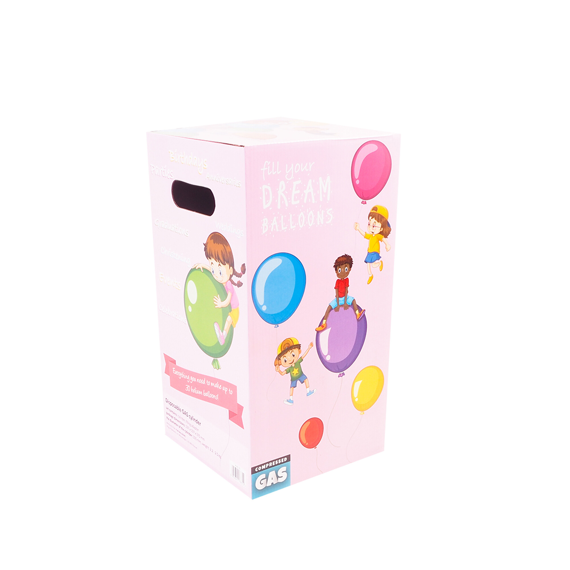 Praktyczna jednorazowa butla helowa, która szybko i łatwo nadmuchuje do 30 balonów.