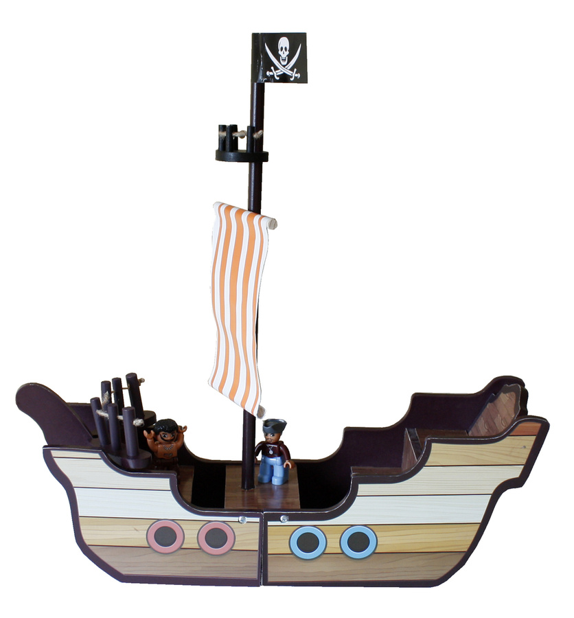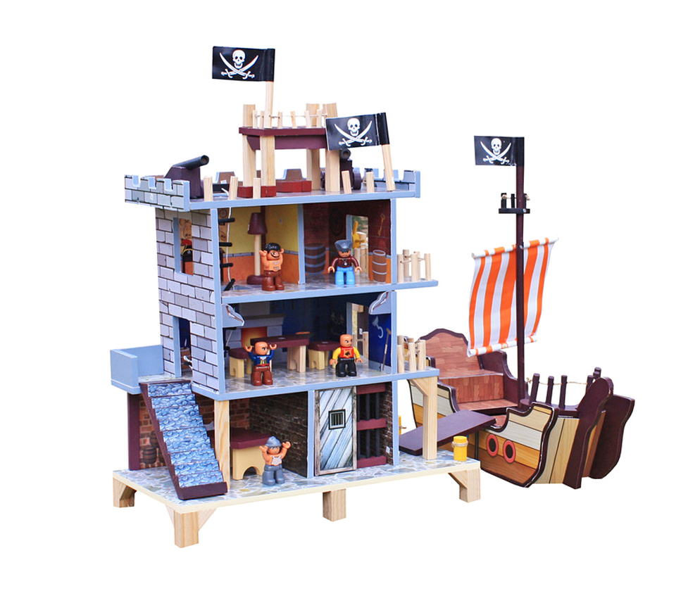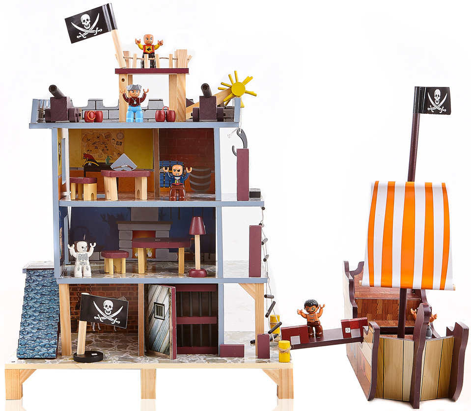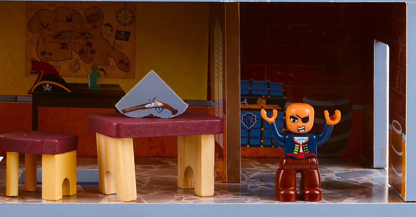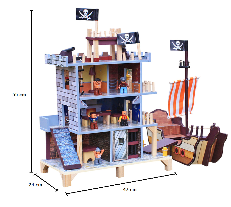 Ten piracki zestaw do zabawy składa się z dwóch podstawowych części, dużego statku pirackiego i wieży widokowej z bogatym zestawem akcesoriów.