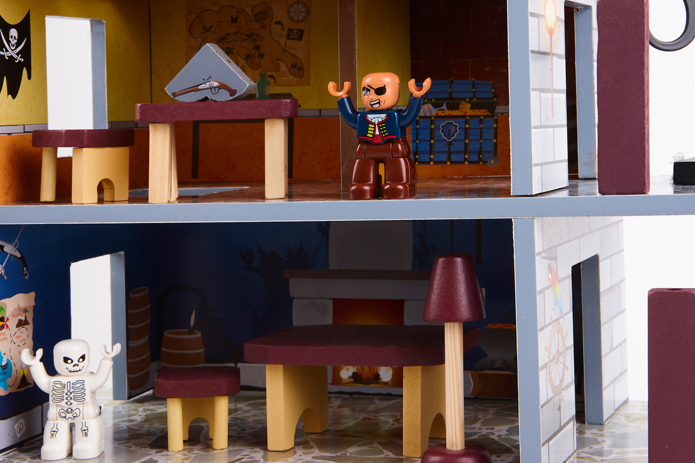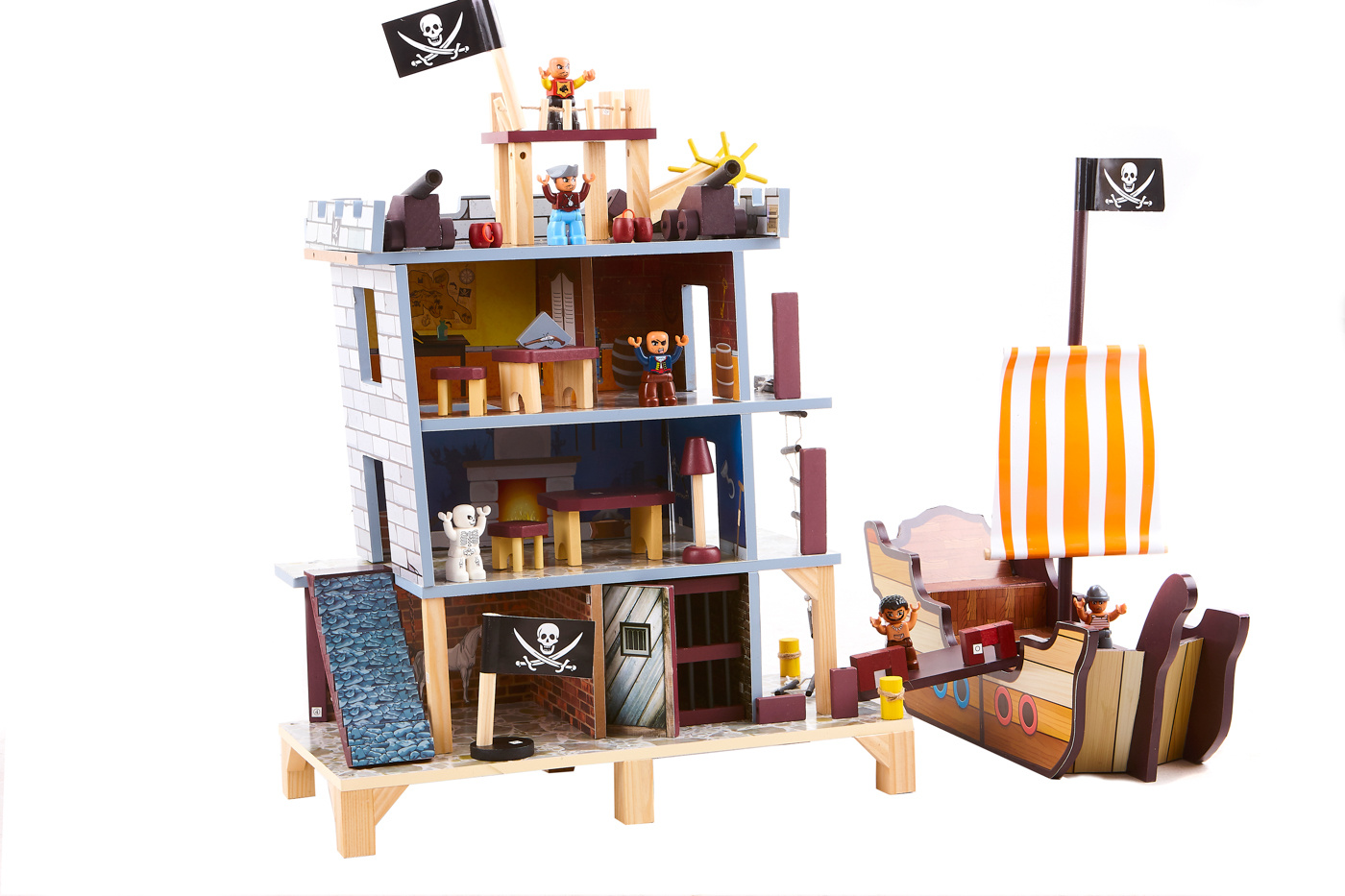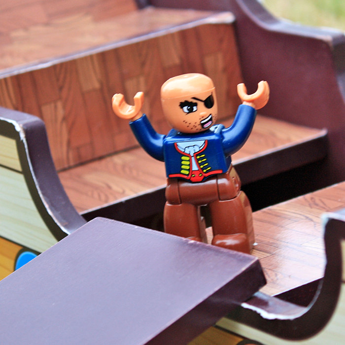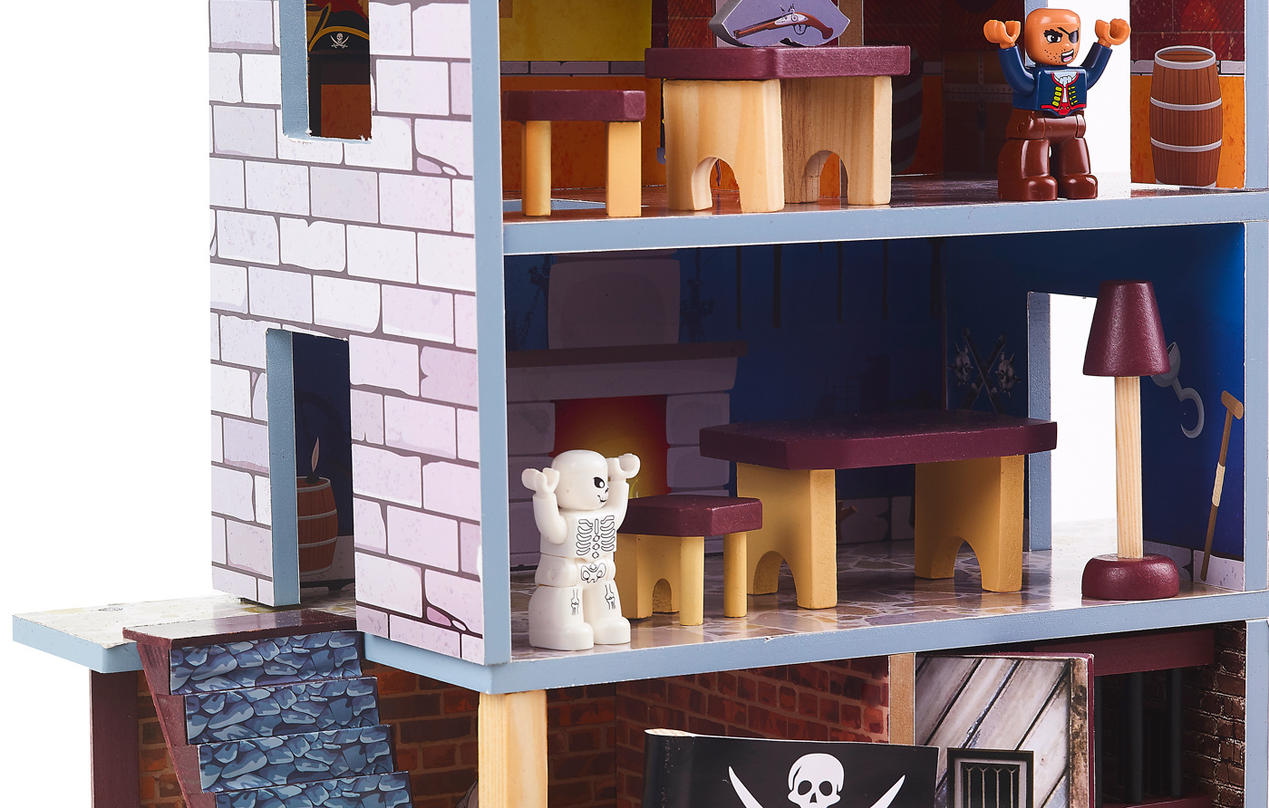 Ten piracki zestaw do zabawy składa się z dwóch podstawowych części, dużego statku pirackiego i wieży widokowej z bogatym zestawem akcesoriów.