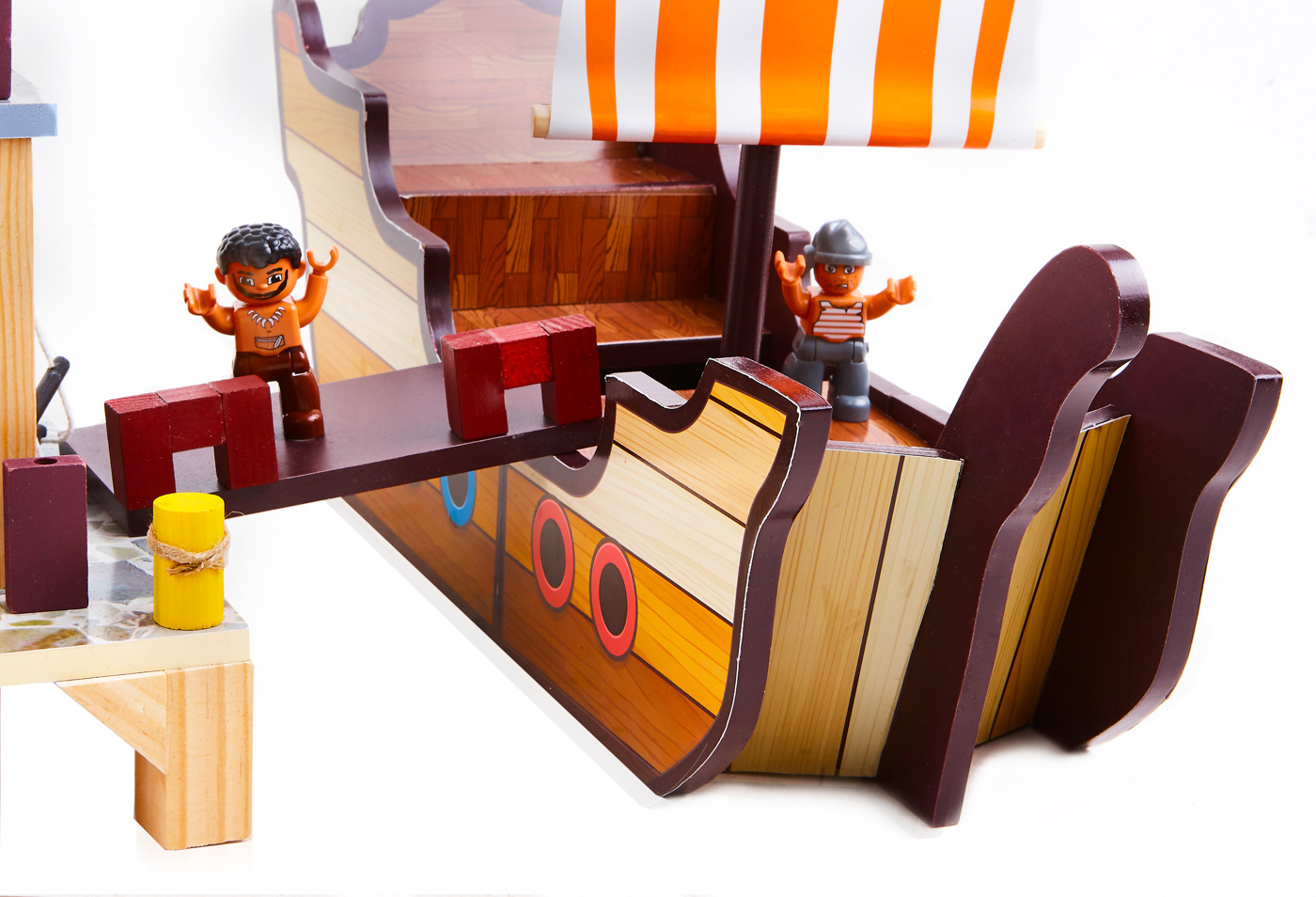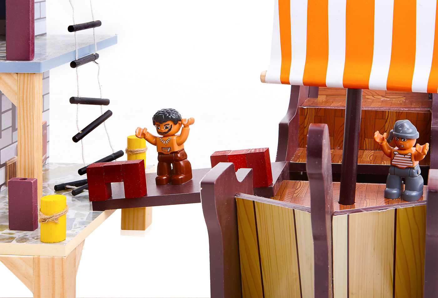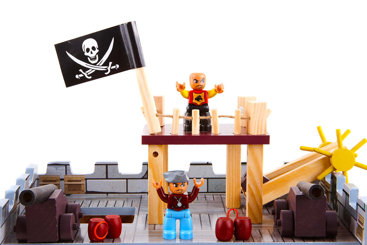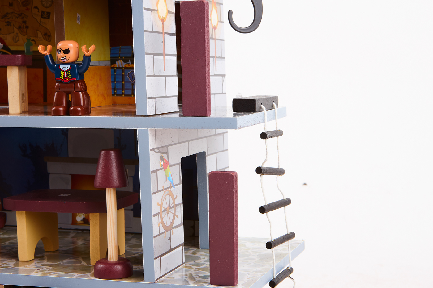 Ten piracki zestaw do zabawy składa się z dwóch podstawowych części, dużego statku pirackiego i wieży widokowej z bogatym zestawem akcesoriów.