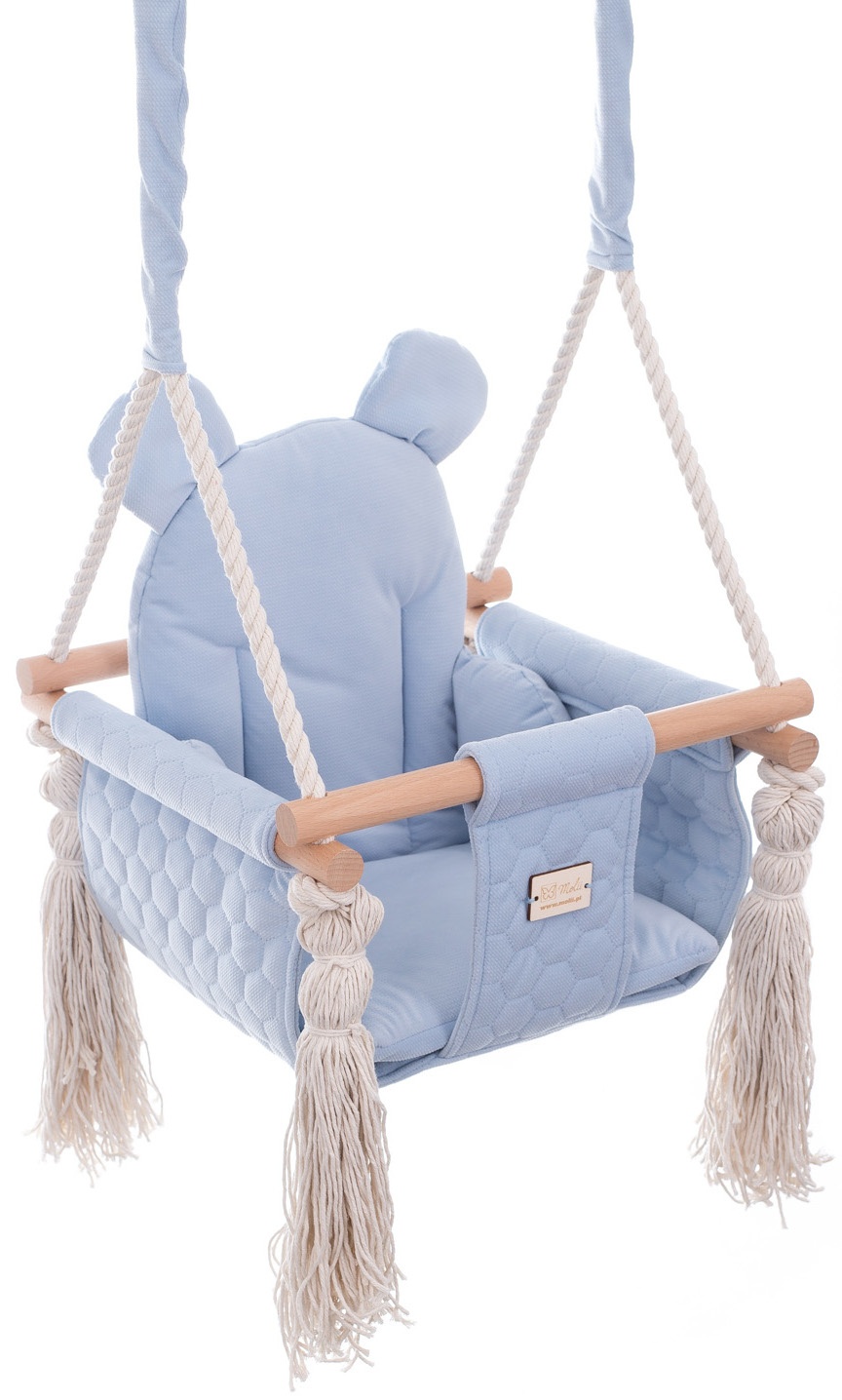 Huśtawka wykonana jest z wielką dbałością o szczegóły. Materiał jest miękki, wygodny i delikatny. Dodają one huśtawce jeszcze więcej uroku. Produkt wykonany jest z miękkiego, aksamitnego materiału pluszowego, który jest bardzo miękki i bardzo trwały.
