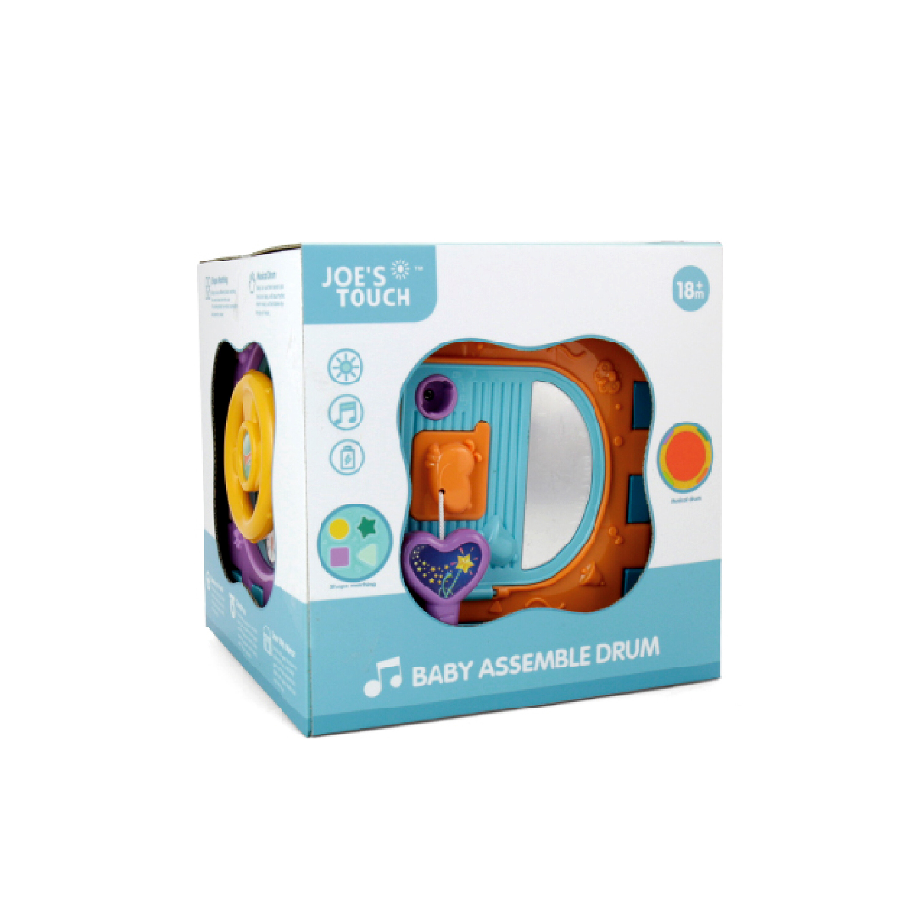 Jedna ze ścian zabawki wyposażona jest w przyciski z wesołymi melodiami i dźwiękami. Największy środkowy przycisk imituje dźwięk bębna.