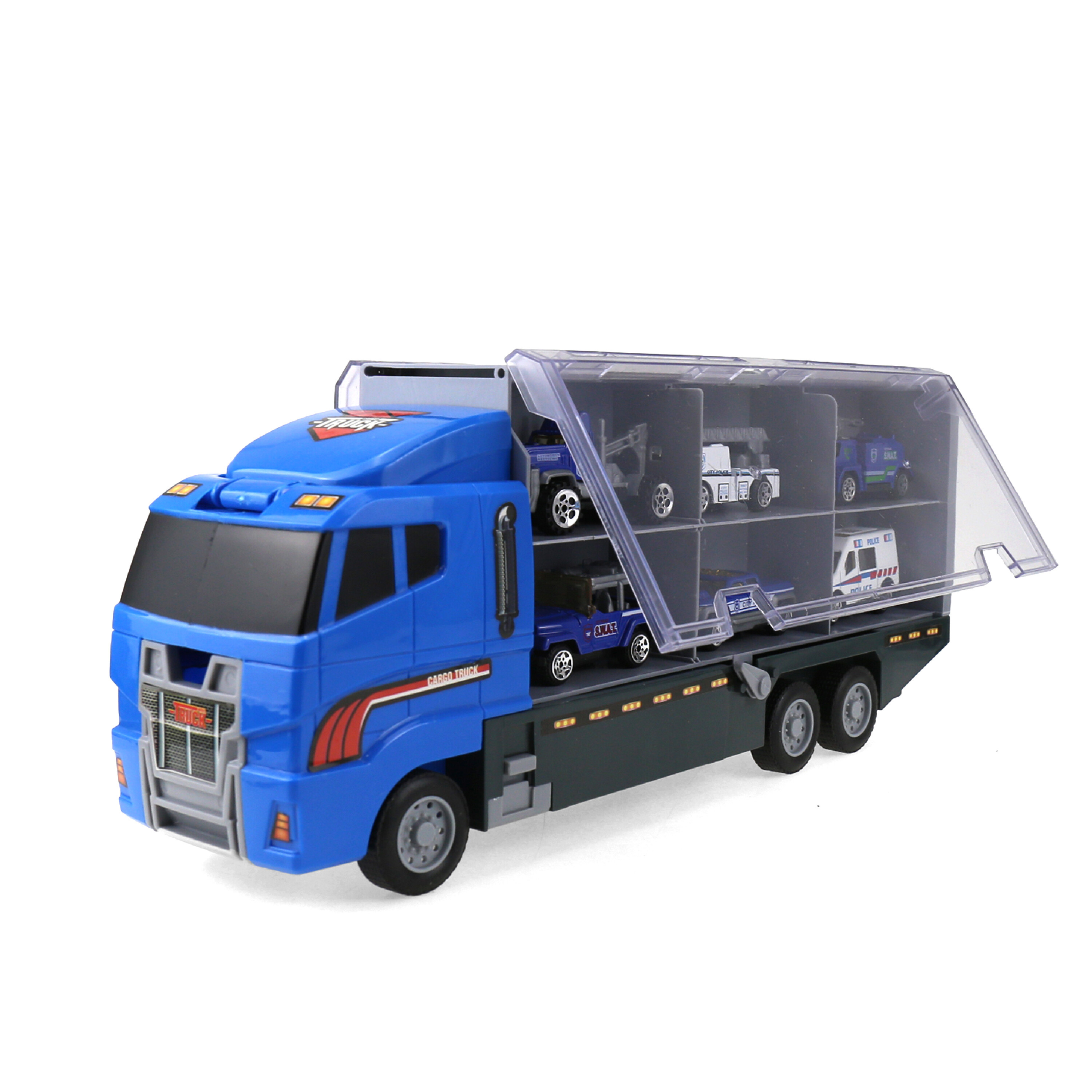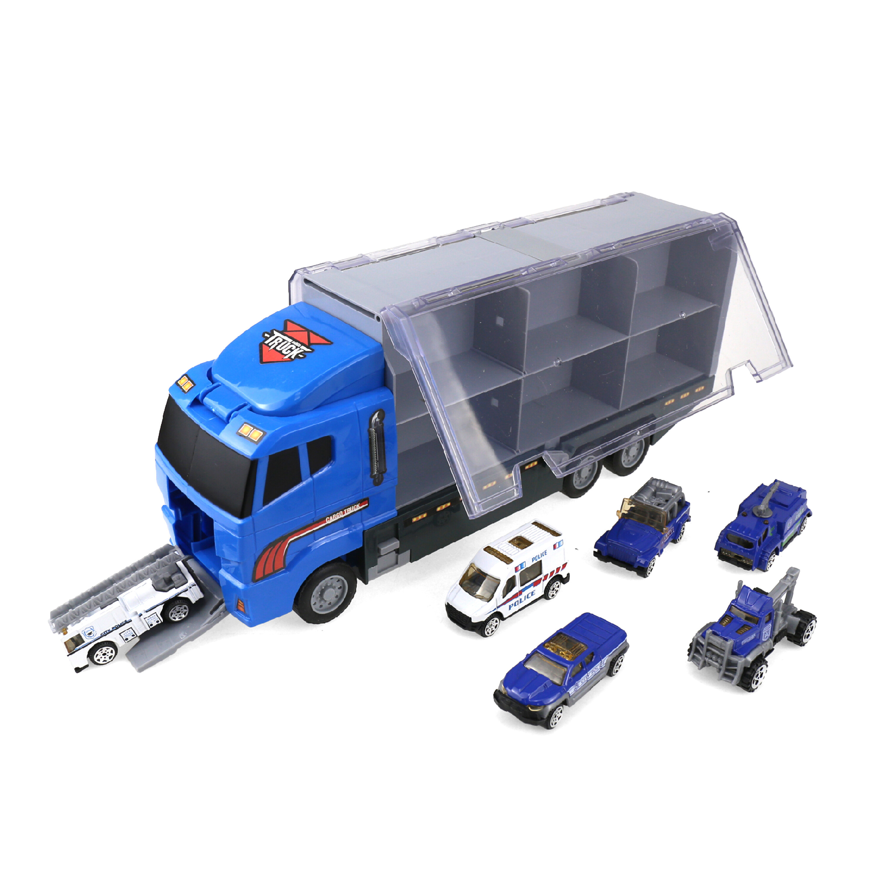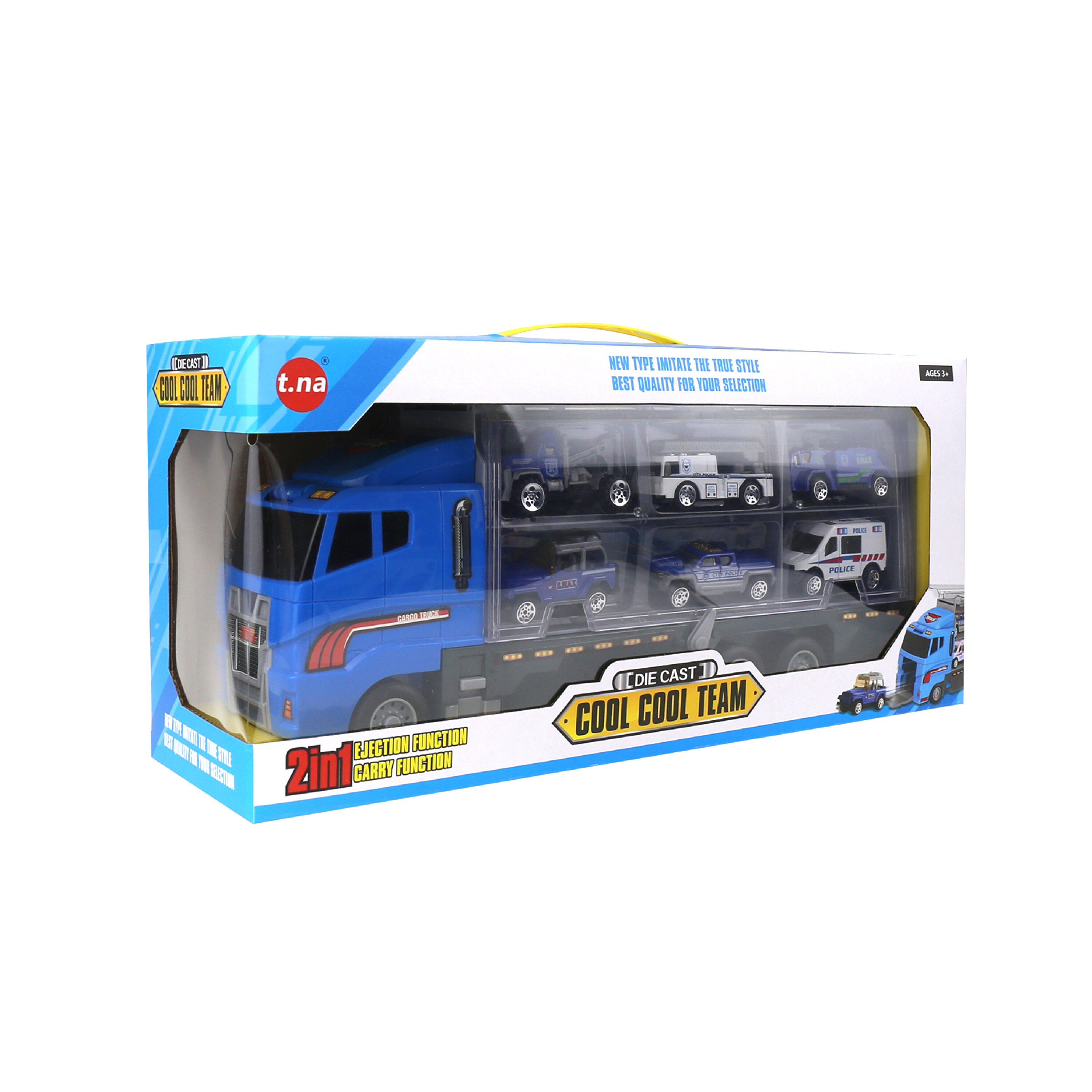 Ciężarówka z funkcją przewozu samochodów, dzięki niej możesz zabrać ze sobą zestaw policyjnych samochodów !