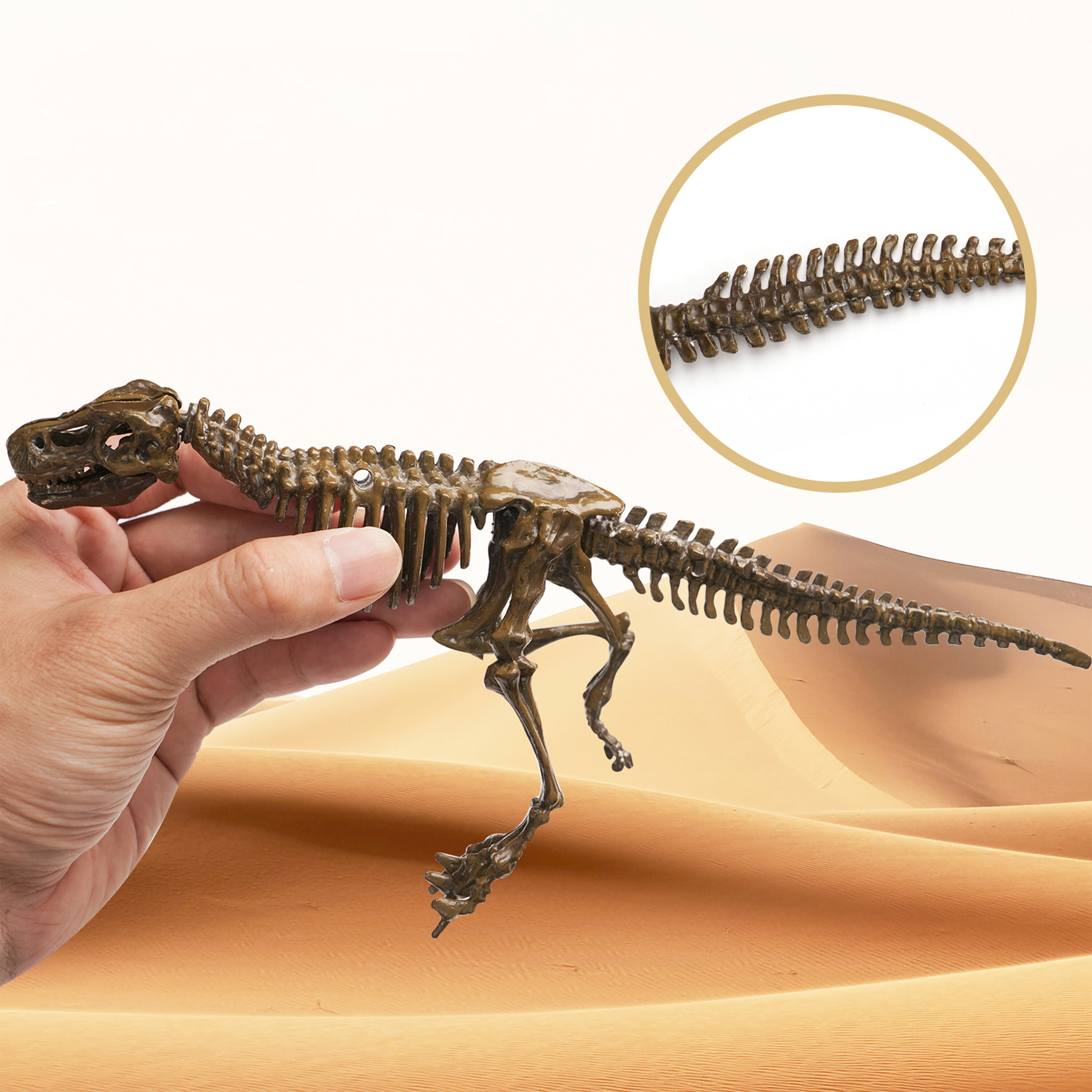Po oczyszczeniu kości można połączyć, tworząc rewelacyjny szkielet T-Rexa, który dzieci mogą wystawić na półce w swoim pokoju.