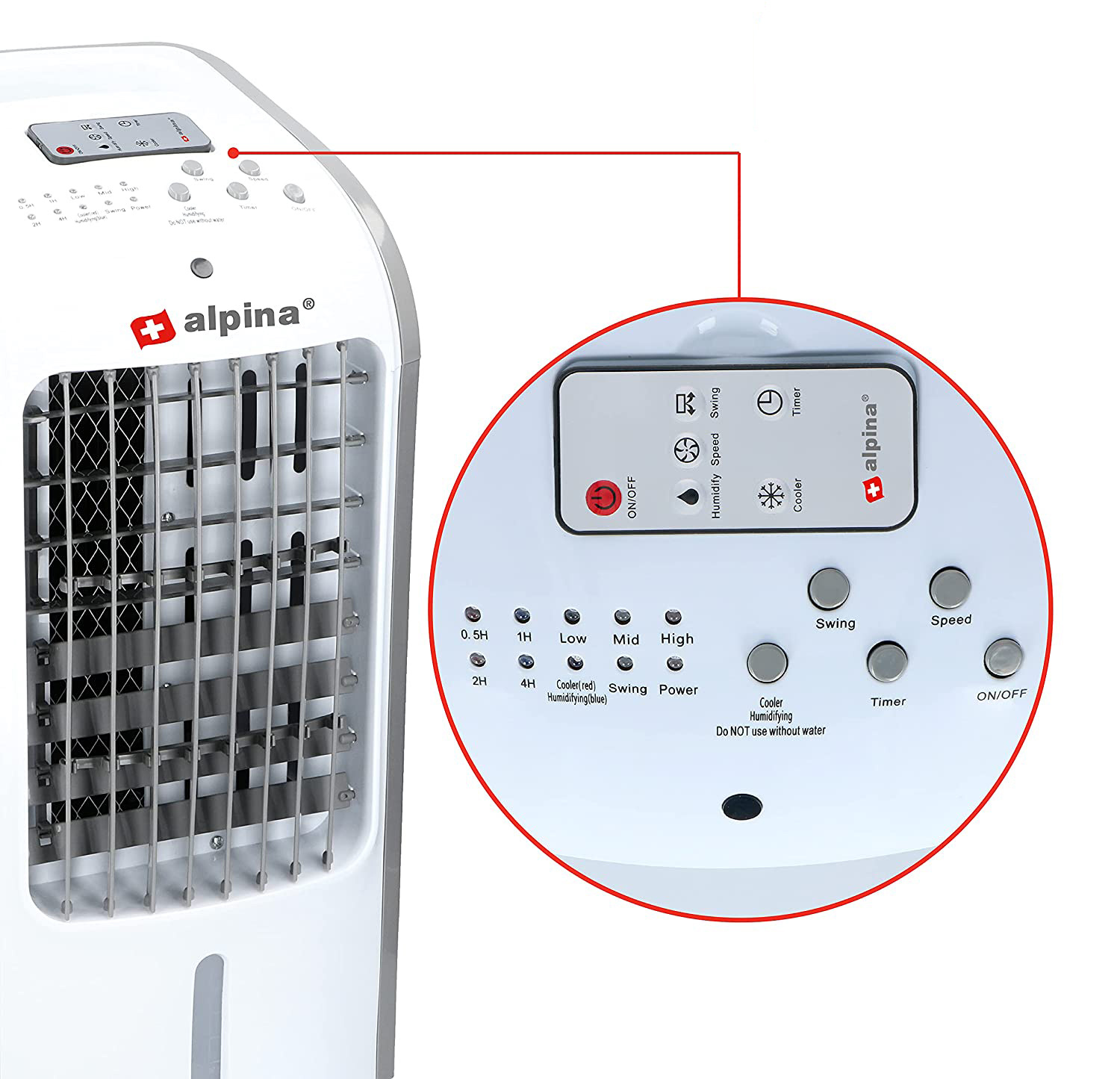 Wielofunkcyjne urządzenie Alpina nie tylko schładza powietrze, ale również je nawilża. Możesz użyć oddzielnie nawilżania powietrza bez chłodzenia lub włączyć tylko wentylator.