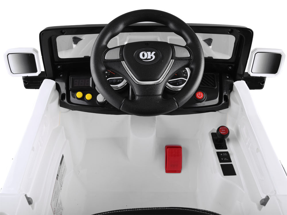 Dzięki 2 mocnym silnikom i 3 prędkościom pojazd bez problemu poradzi sobie z nierównościami, jazdą po ogrodzie. Samochód z otwieranymi drzwiami zapewni komfortowe wsiadanie do autka. Pojazd ma możliwość ustawienia prędkości poprzez pilot, ale także w samochodzie znajduje się przełącznik, do zmiany prędkości na szybki lub wolny. Opcja podłączenia odtwarzacza MP3.