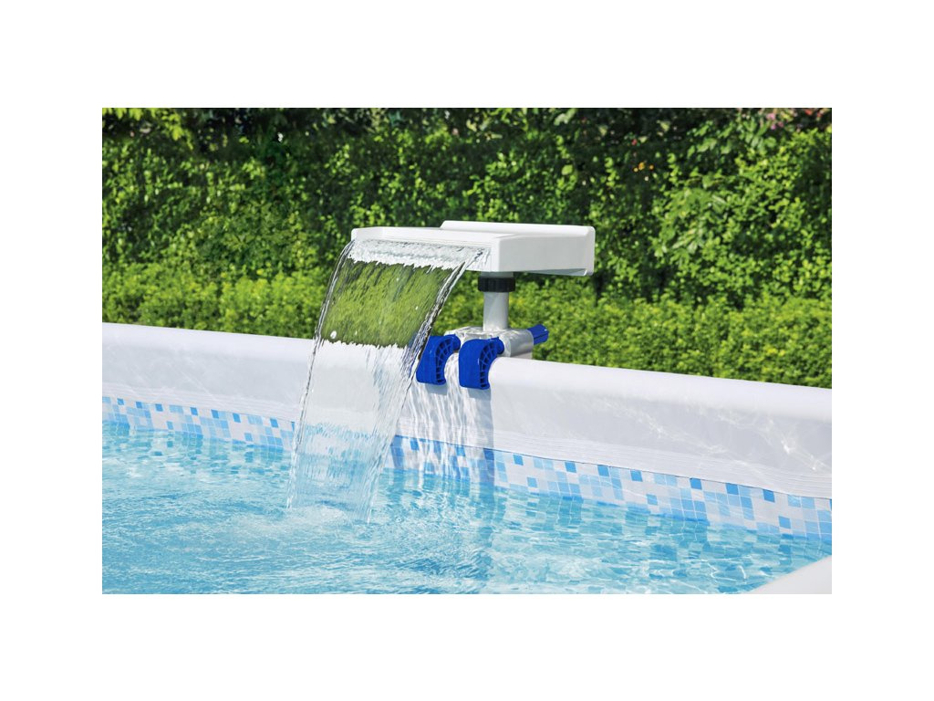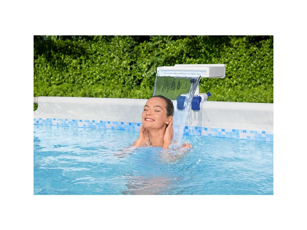 Wodospad również doskonale natlenia wodę i nie pozostawia jej w stagnacji, co jest ważne dla prawidłowego czyszczenia basenu i funkcjonowania filtracji.
