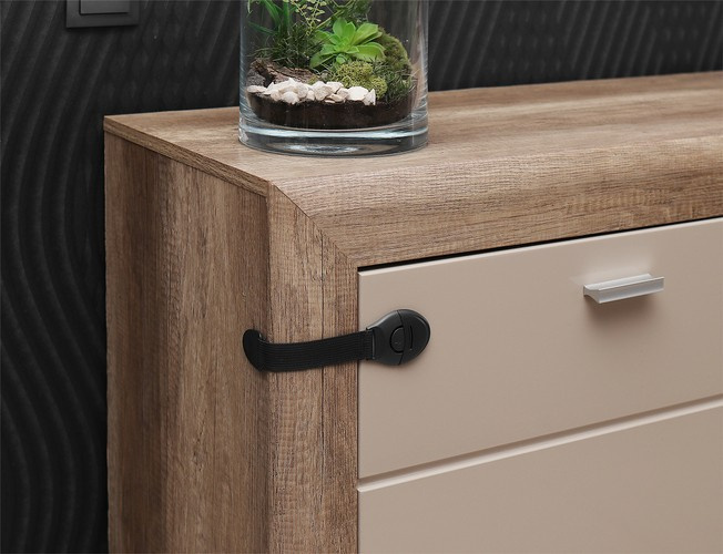 Blokada do szafek nie tylko zabezpiecza małe paluszki przed przypadkowym przytrzaśnięciem. To również idealny sposób na zabezpieczenie przed otwarciem mebli, w których znajdują się przedmioty niebezpieczne dla dziecka – np. szuflady z nożami. Zabezpieczenie szafek sprawdzi się również w przypadku zwierząt, które lubią otwierać meble podczas nieobecności właściciela i „robić porządki” w ubraniach. Klips nie otworzy się bez naciśnięcia w prawidłowy sposób, dzięki czemu zawartość szafki/szuflady będzie bezpieczna.