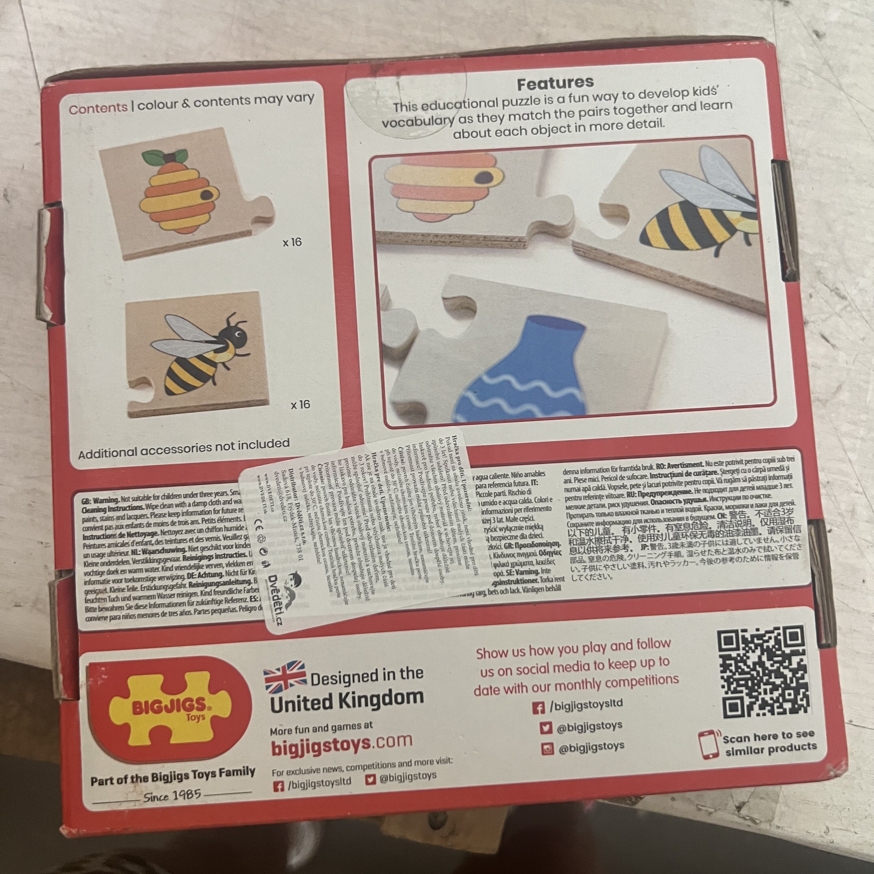 Czy potrafisz poprawnie ułożyć drewniane elementy układanki? Układanka „Co do siebie pasuje” uczy dzieci o różnych przedmiotach codziennego użytku, które do siebie pasują. Do czego pasuje trzmiel? A co z kłódką? Ta edukacyjna układanka to świetny sposób na rozwijanie słownictwa dzieci poprzez dopasowywanie elementów do par i poznawanie każdego przedmiotu z większą szczegółowością. Gładkie, wytrzymałe elementy układanki mają idealny rozmiar dla małych rączek, aby mogły je chwytać, układać i odkrywać. Wykonana z najwyższej jakości drewna pochodzącego ze zrównoważonych źródeł i pomalowana nietoksycznymi farbami i lakierami. Spełnia aktualne europejskie normy bezpieczeństwa. Wykonana z wysokiej jakości materiałów pochodzących ze zrównoważonych źródeł.