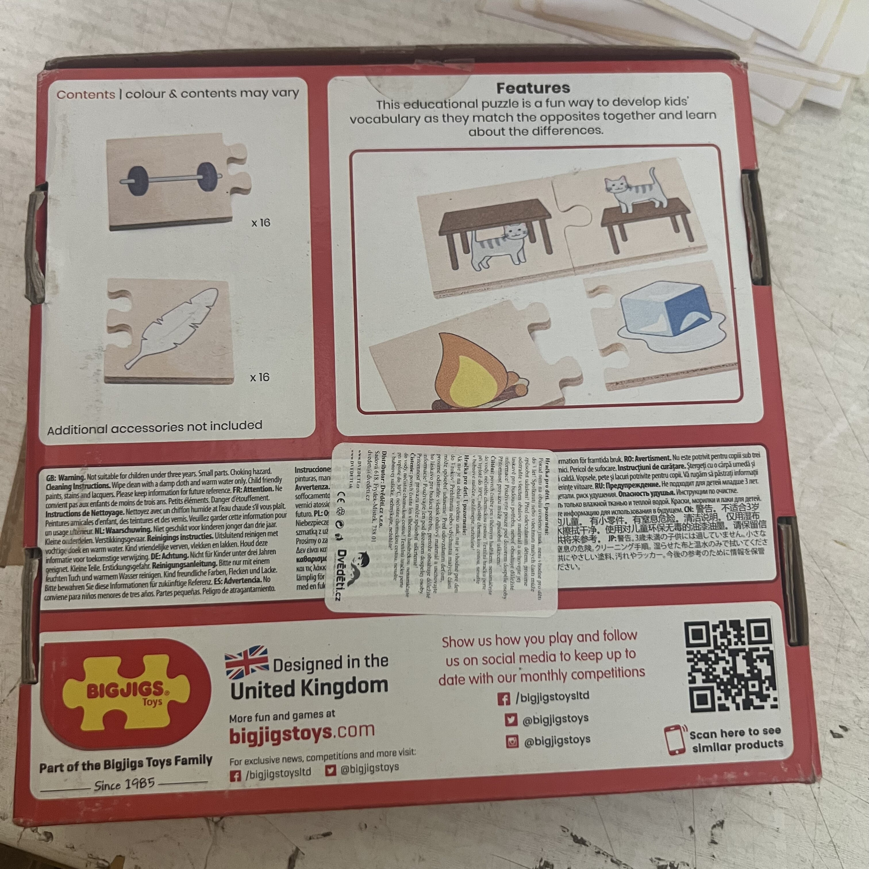 Czy potrafisz połączyć ze sobą przeciwieństwa? Nasza układanka „Przeciwieństwa” uczy dzieci o różnych przedmiotach codziennego użytku i rzeczach, które są sobie przeciwstawne. Co jest przeciwieństwem smutku? Co jest przeciwieństwem zimna? Ta edukacyjna układanka to świetny sposób na rozwijanie słownictwa dzieci poprzez łączenie przeciwieństw. Gładkie, wytrzymałe elementy układanki mają idealny rozmiar dla małych rączek, aby mogły je chwytać, układać i odkrywać. Wykonana z najwyższej jakości drewna pochodzącego ze zrównoważonych źródeł. Spełnia aktualne europejskie normy bezpieczeństwa. Wykonana z wysokiej jakości materiałów pochodzących ze zrównoważonych źródeł.