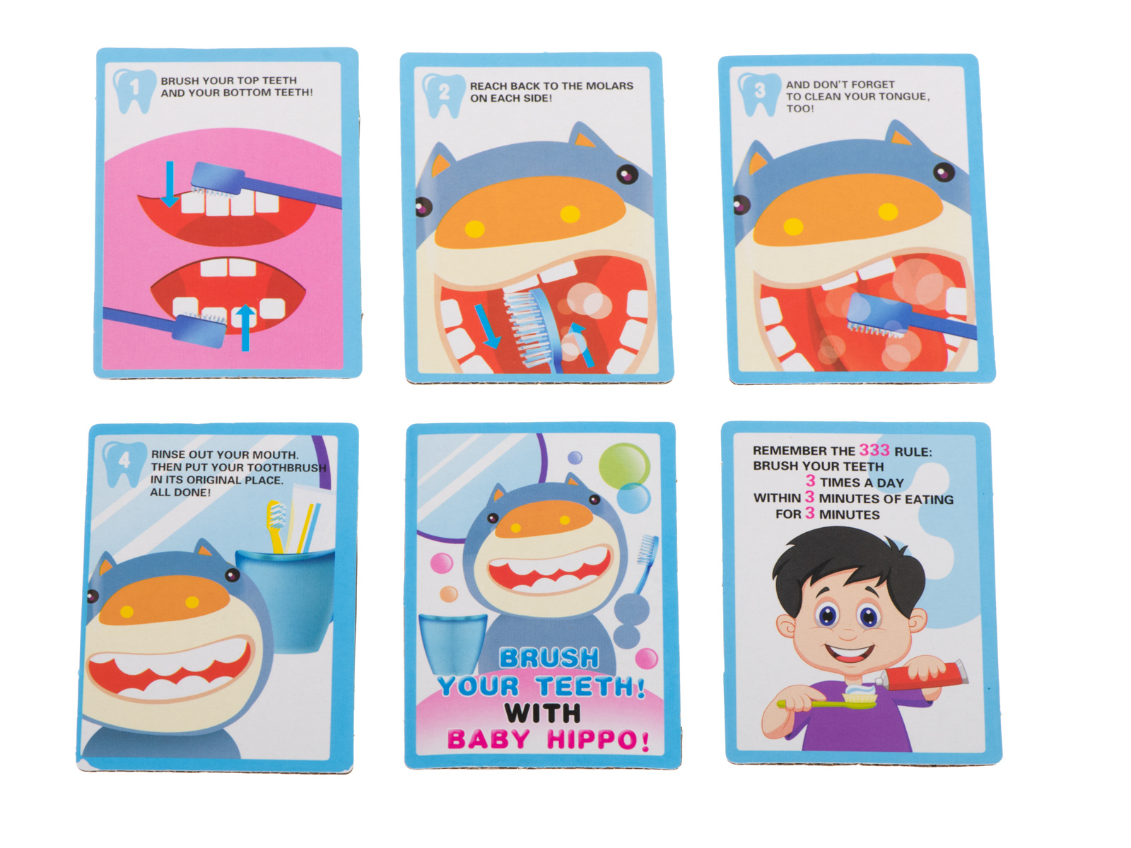 Karty w języku angielskim przedstawiające czynności związane z myciem zębów