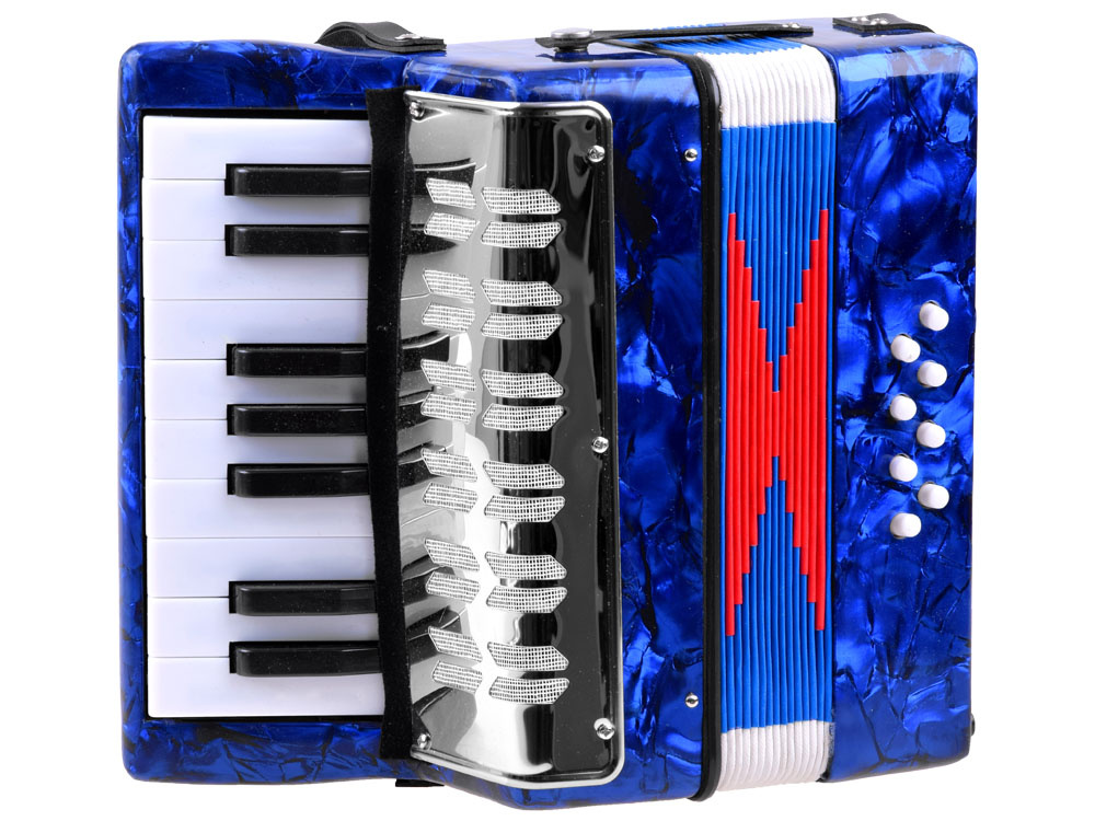 Nowy, duży akordeon to propozycja dla ciekawych świata, odważnych dzieci, które lubią muzykę w każdym wydaniu. Akordeon dla dziecka wygląda jak prawdziwy instrument muzyczny, rozwija zdolności motoryczne dziecka, wpływa na wrażliwość muzyczną i umiejętność rozróżniania dźwięków. Zasada działania jest taka sama jak w prawdziwym akordeonie- wydobyć dźwięk trzeba rozwijać i składać harmonię. Dodatkowo akordeon posiada klawisze i przyciski basowe. Uchwyt na ręce oraz skórzany pasek do zawieszenia na ramionach, ułatwiają wygodne i pewne trzymanie akordeonu. Klamra do miechu zabezpiecza zabawkę przed uszkodzeniem, gdy nie jest używana. Starannie i estetycznie wykonany instrument może stać się inspiracją dla dziecka do dalszej nauki. Muzyka towarzyszy nam od zawsze w pracy, zabawie, odpoczynku.