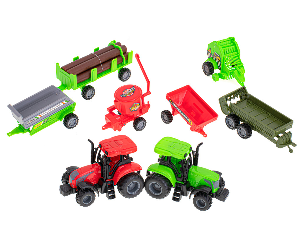 Po dużym gospodarstwie ciężko poruszać się piechotą, żeby ułatwić obrządek do zestawu dołączono 2 traktory z wymiennymi przyczepami.