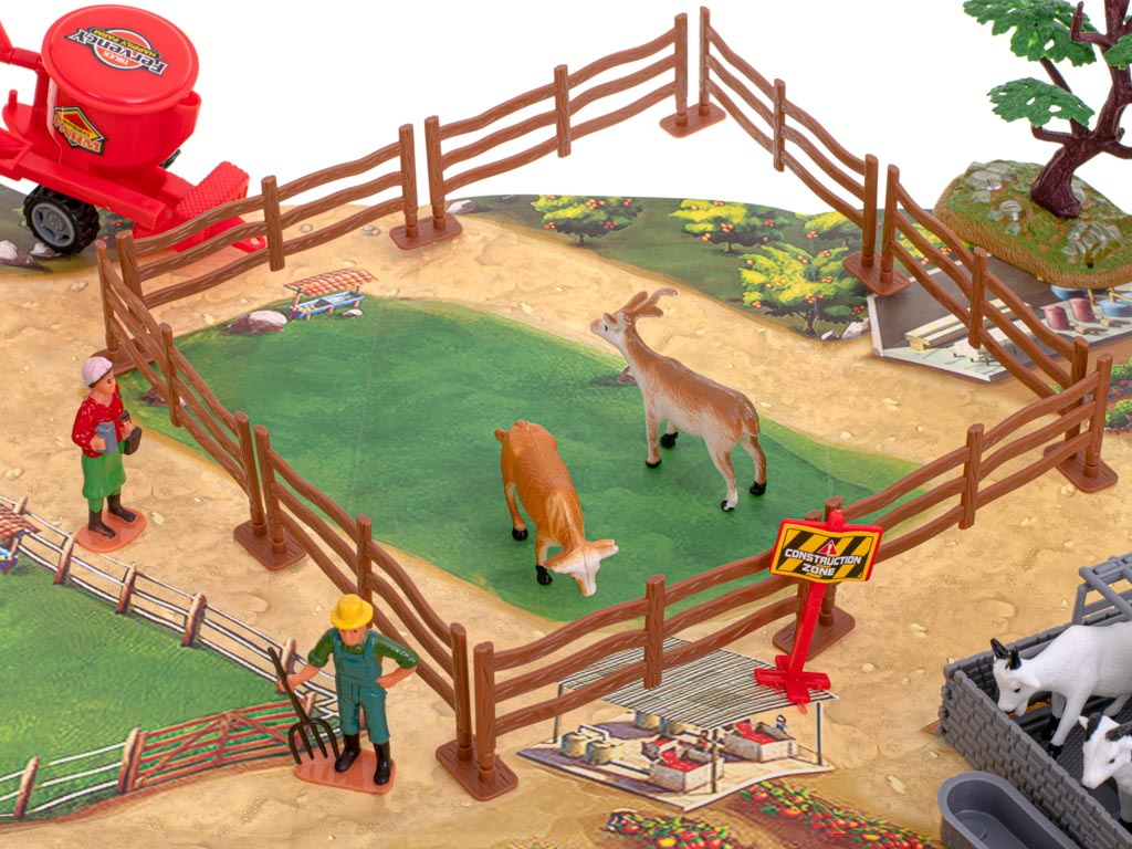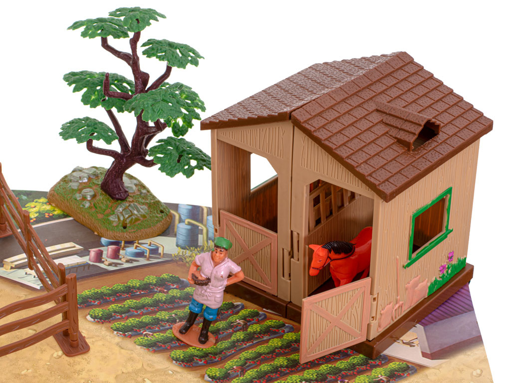 Ta zabawka pozwoli dziecku lepiej poznać realia życia na wsi. Zestaw rozwija wyobraźnię i kreatywne myślenie. Konstrukcja planszy umożliwia ustawienie zabudowań gospodarczych według wizji małego budowniczego. Wszystkie elementy zostały dostosowane do małych rączek, więc dziecko bez problemu "przebuduje" swoje podwórko.