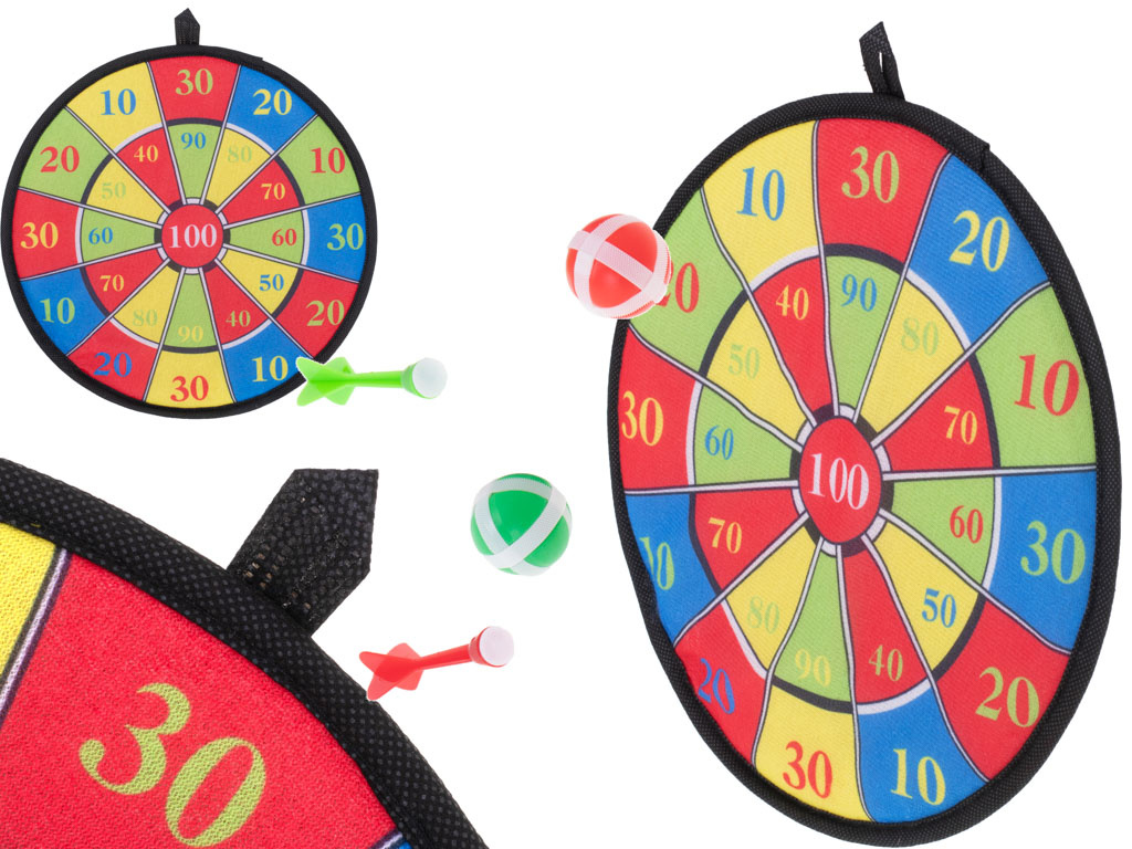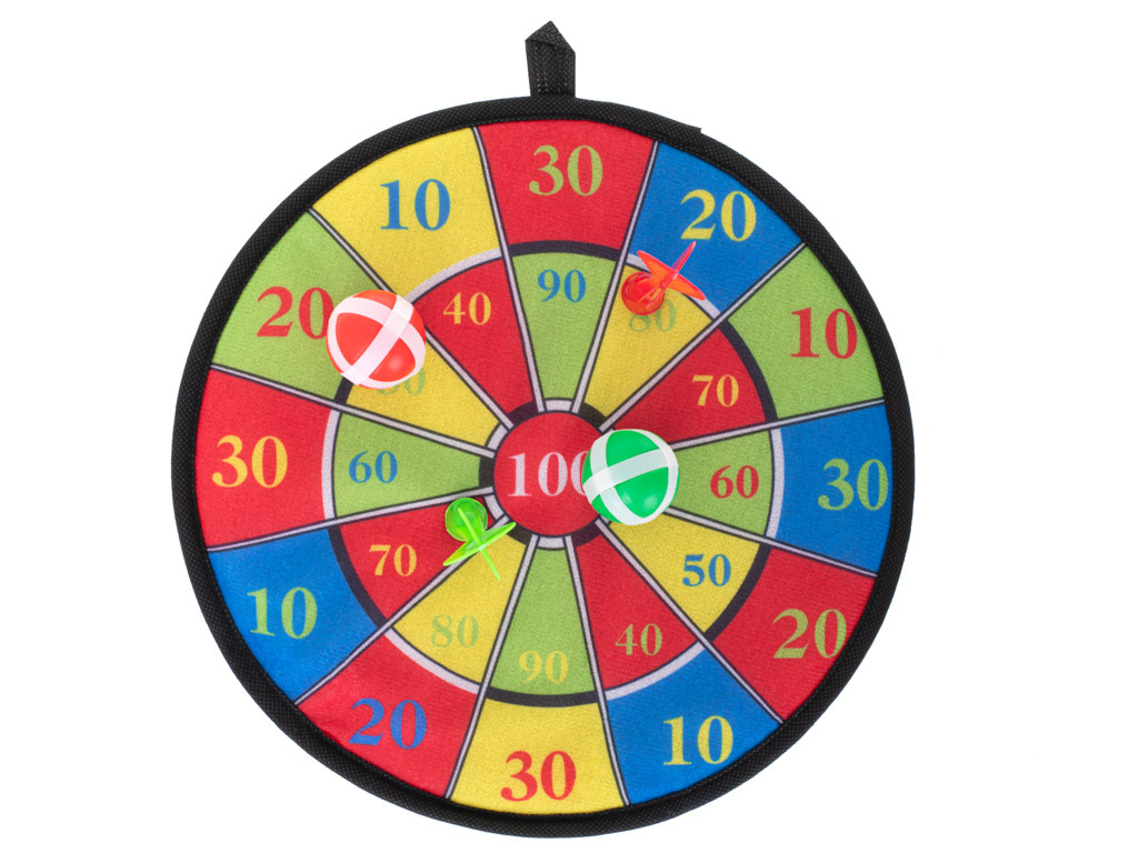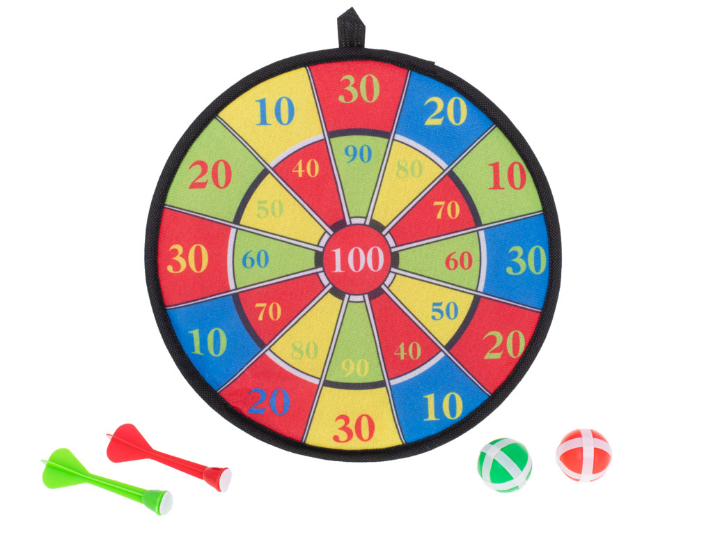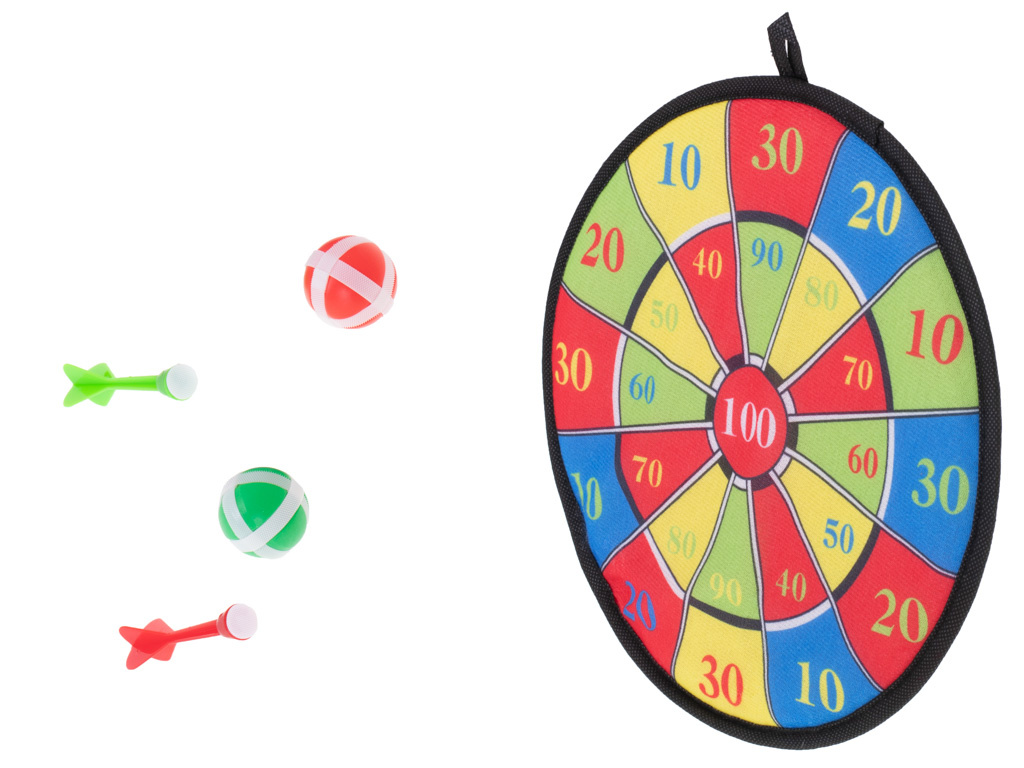 Okrągła tarcza i plastikowe piłeczki z rzepami to wszystko co jest potrzebne aby rozpocząć fantastyczną grę.