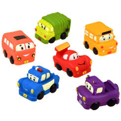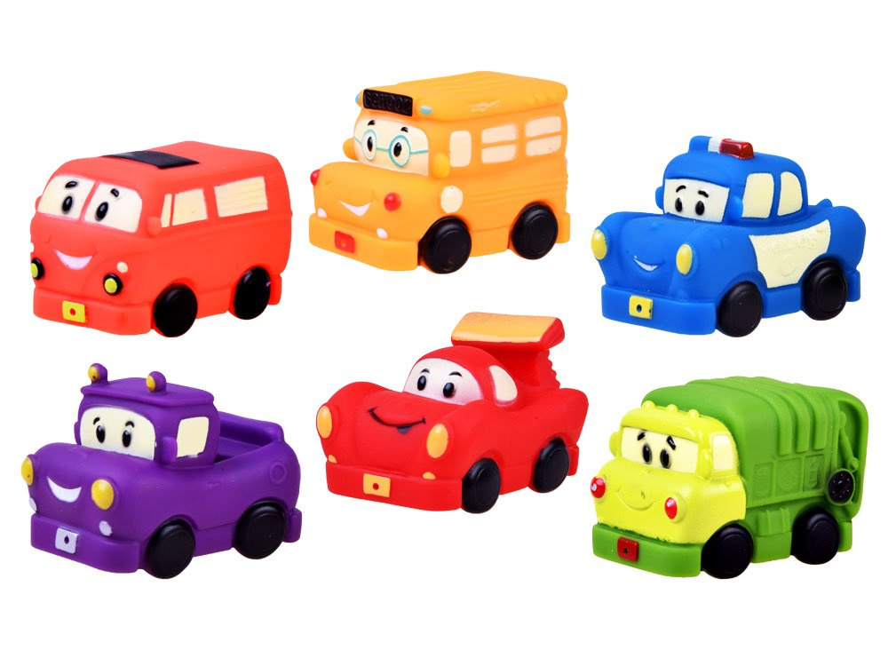 Kolorowe gumowe autka sprawdzą się podczas każdej zabawy w wodzie. Czy będzie to kąpiel wieczorna, czy pluskanie w basenie zestaw gumowych autek podoła wodnym przygodom. Autka w całości wykonane z gumy, posiadają dziurkę w swej karoserii, dzięki czemu dziecko będzie mogło psikać wodą mamę, tatę lub po prostu się wesoło bawić.
