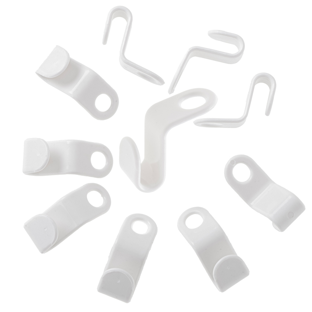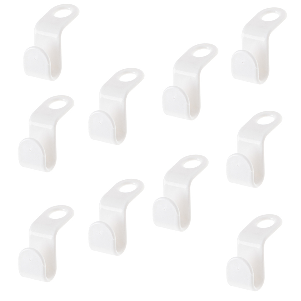 Haczyki zostały wykonane z wysokiej jakości tworzywa sztucznego, dzięki czemu nie złamią się pod ciężarem większych wieszaków czy kurtek zimowych.