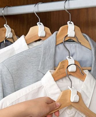 Prosty sposób na uporządkowanie ubrań. Dzięki niemu zawiesisz na wieszakach mnóstwo ubrań nie zajmując przy tym całej szafy. W sprytny sposób zwiększysz pojemność swojej garderoby. Co więcej prawidłowo zawieszone ubrania nie będą się gniotły, dlatego zaoszczędzisz czas, który musiałbyś poświęcić na prasowanie.
