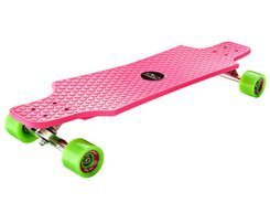 Różowa deskorolka longboard wykonana z wysokiej jakości wytrzymałego polipropylenu. Góra deski pokryta jest antypoślizgową warstwą. Deskorolka posiada 7" traki aluminiowe. Kółka wykonane z wysokiej jakości odlewanego PU osadzone na łożyskach ABEC 7 Chrom. Maksymalna waga użytkownika 100 kg.