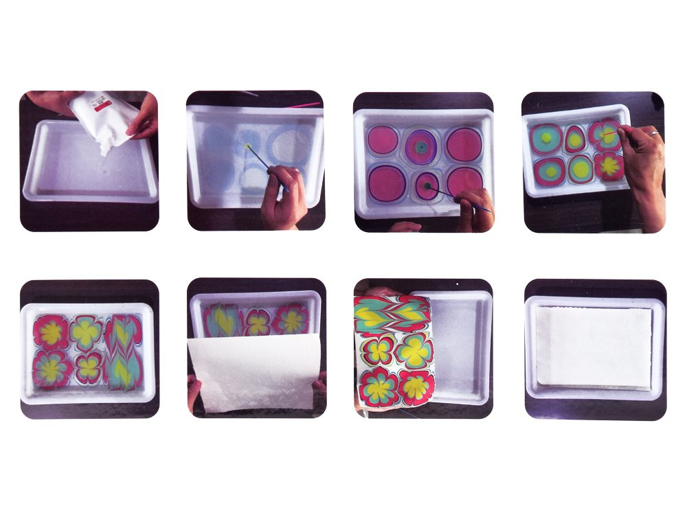 4. gdy wzór jest już skończony, delikatnie połóż przygotowany papier na powstały obraz. Odłóż w czyste, suche miejsce do pełnego wysuszenia.