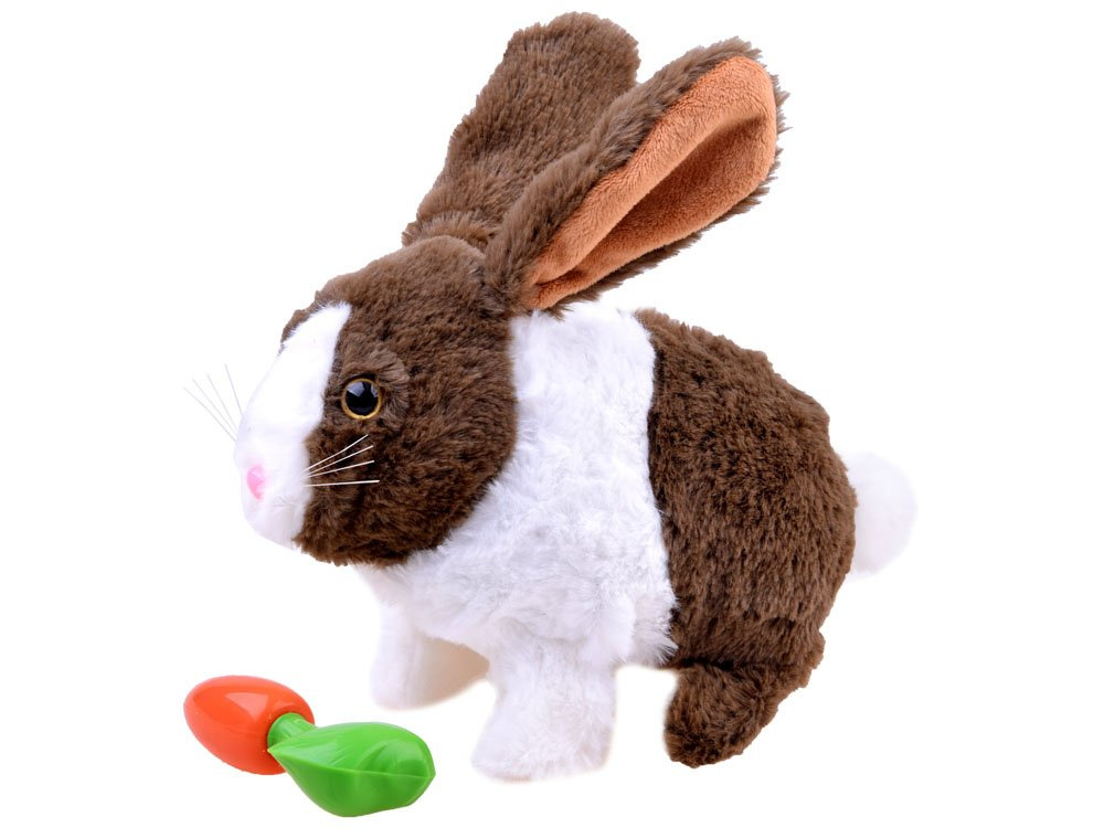 - podczas karmienia marchewką wydaje odgłosy chrupania, marchewkę należy ustawić czubkiem do pyszczka, aby zwierzątko zaczęło chrupać warzywko (wydawać odgłosy chrupania)