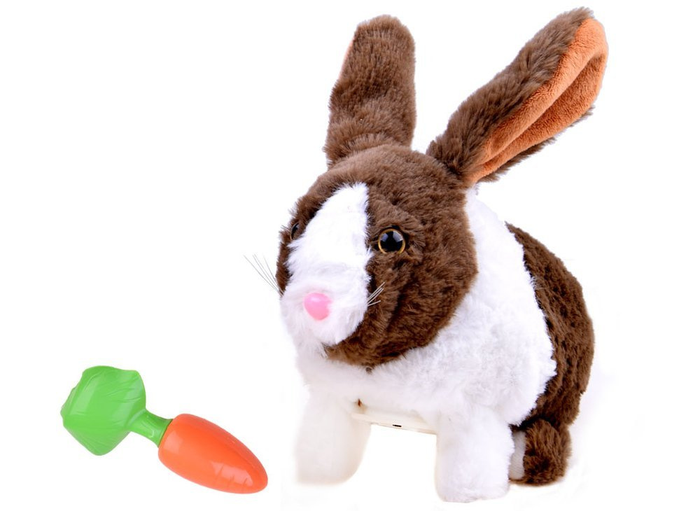 - królik, świnka morska zaczyna kicać, poruszać się, w momencie gdy dziecko się nim nie interesuje zaczyna wydawać dźwięki