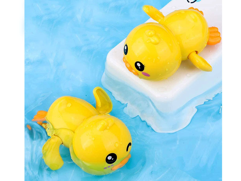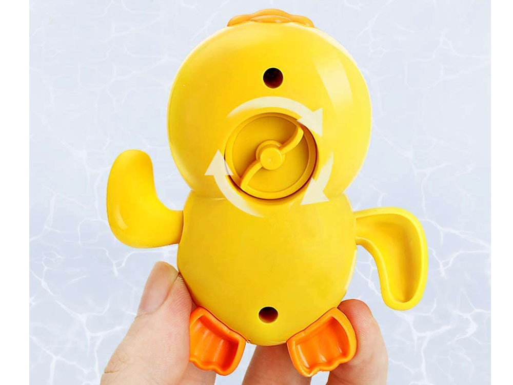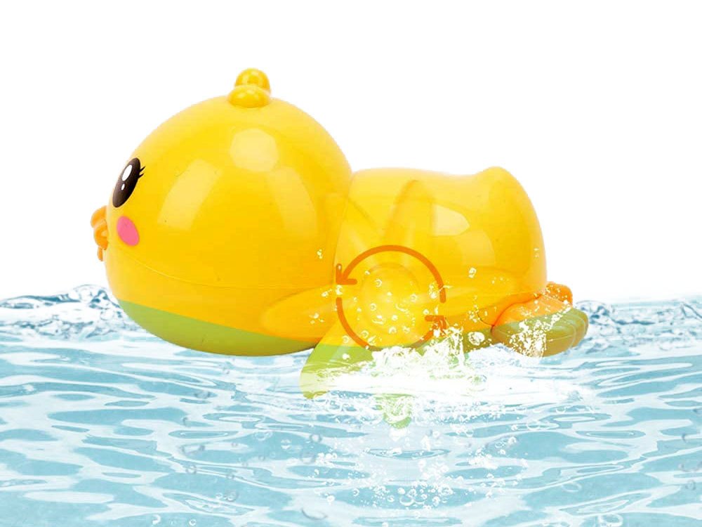 Żółta kaczuszka to zabawka przeznaczona do zabawy w wodzie np. podczas kąpieli wieczornych, w basenie. Zabawka w całości wykonana jest z plastiku, od spodu posiada pokrętło, które należy nakręcić i puścić kaczuszkę do wody. Zabawka wówczas zaczynie poruszać skrzydełkami.