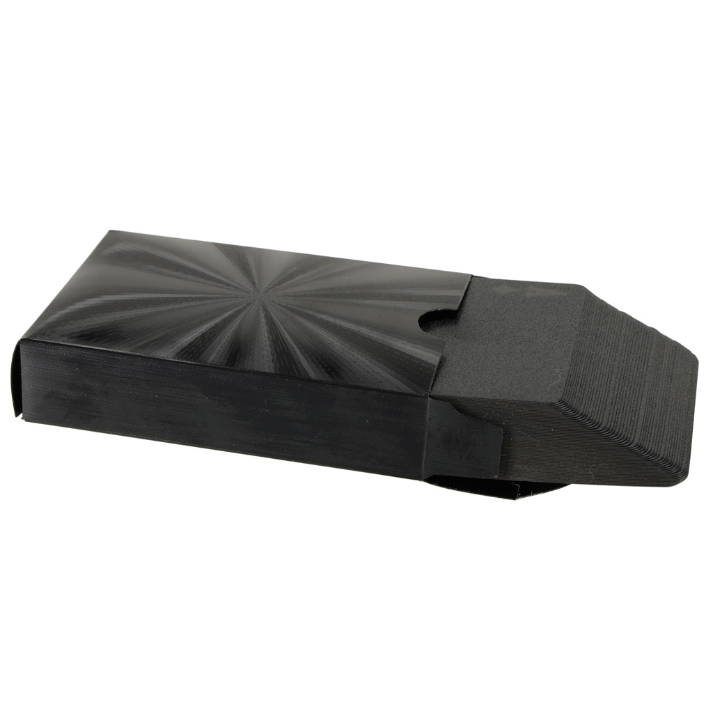 Ekskluzywna talia kart wykonana została z ogromnym naciskiem na każdy szczegół i detal. Niepowtarzalny, czarny, metaliczny kolor, zwiększy jej atrakcyjność.