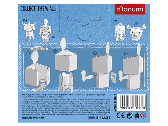 MONUMI to polska marka, którą tworzy zespół ludzi, dla których praca jest pasją, a szczęście dziecka to główna nagroda za kreatywne tworzenie zabawek, które bawią i uczą. Staranny dobór grupy specjalistów opracowujących materiały, zarówno pod kątem merytorycznym jak i artystycznym, ukierunkowany jest na to, by nasze produkty efektywnie wpływały na rozwój intelektualny dzieci. MONUMI tworzy wyjątkowe zestawy kreatywne z papieru i kolorowanki przeznaczone dla różnych grup odbiorców, uwzględniające ich potrzeby estetyczne i intelektualne.