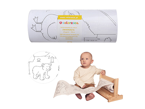 Poznajcie kolorowankę, która jest inna niż wszystkie, z jakimi do tej pory mieliście do czynienia! Co wyróżnia ten produkt marki COLOResca? Niemal niekończące się kolorowanie – do dyspozycji jest aż 30 metrów prostych kolorowanek, zwiniętych w rolkę, z możliwością podzielenia na mniejsze arkusze. Ta koncepcja zmienia zwykłą kolorowankę w coś niezwykłego i pobudzającego wyobraźnie dziecka. Produkt przeznaczony jest dla dzieci w wieku przedszkolnym.