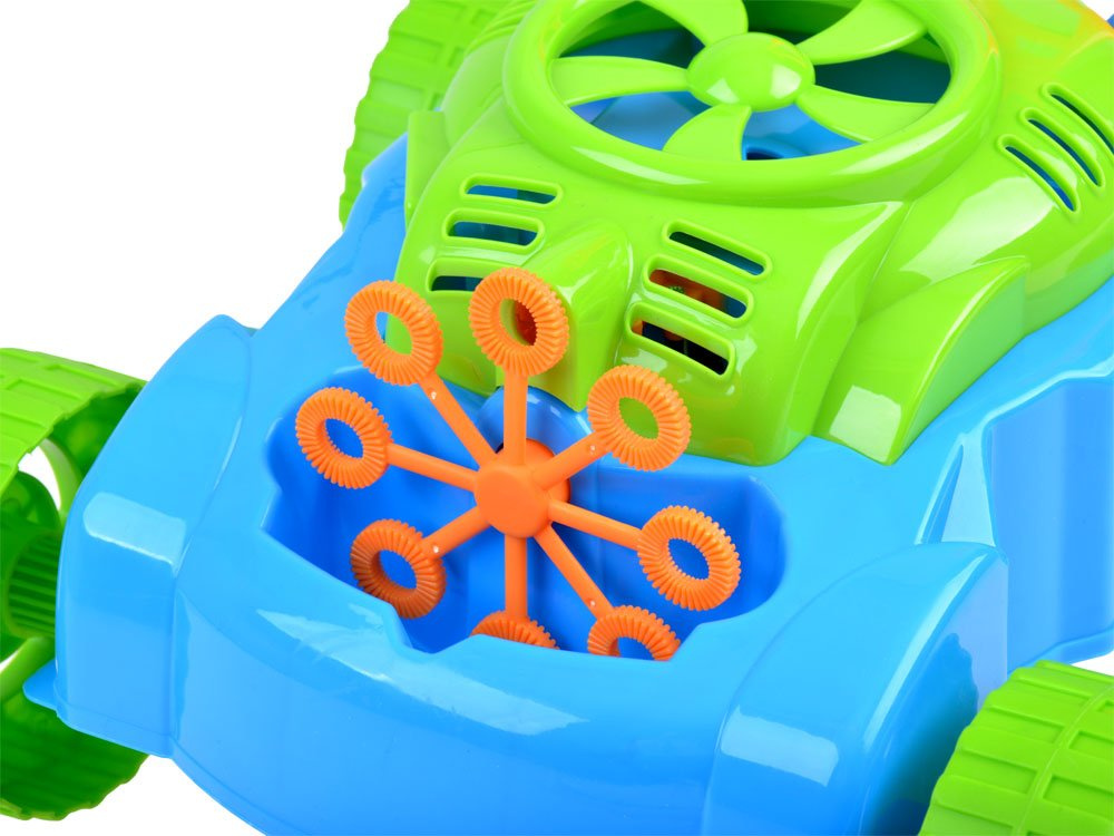 Aby zabawę uatrakcyjnić podczas ,,koszenia trawy" wystarczy wlać płyn do pojemnika pod tarczą z otworami, nacisnąć przycisk i gotowe bańki lecą przed siebie. Zabawa cudna murowana.