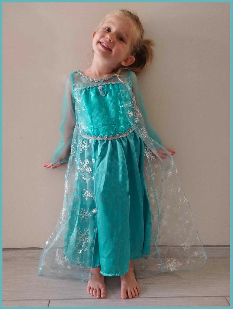 Karnawałowa, niebieska sukienka z wizerunkiem księżniczki Elsy
