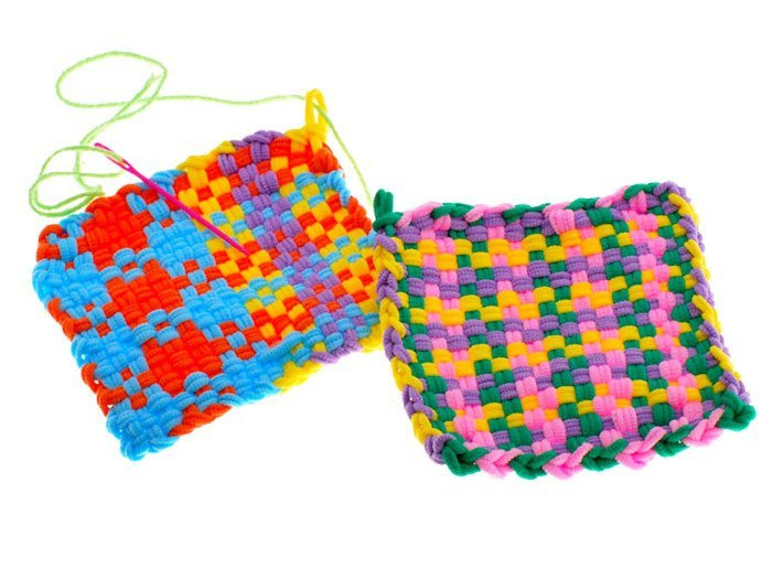 Domowy warsztat tkacki w postaci plastikowego krosna i kolorowych, elastycznych, materiałowych sznurków, pozwoli na stworzenie niesamowitych własnych kompozycji typu torebka, portfelik, etui, podkładek...