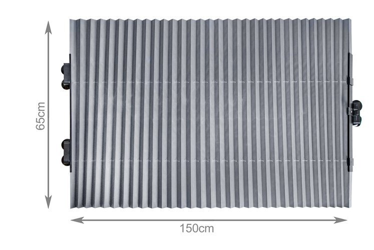 ŁATWY MONTAŻ - aby zamontować roletę na szybie samochodu, wystarczy przymocować ją za pomocą przyssawek dołączonych do zestawu z jednej strony, pociągnąć, a następnie przymocować w ten sam sposób z drugiej strony . Roleta rozkłada się jak akordeon na szybie samochodu. Dzięki temu nie zajmuje dużo miejsca i można go przewozić w samochodzie.