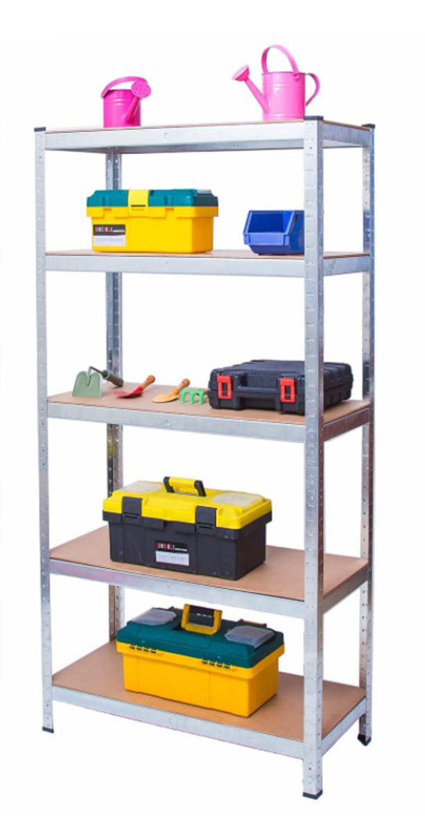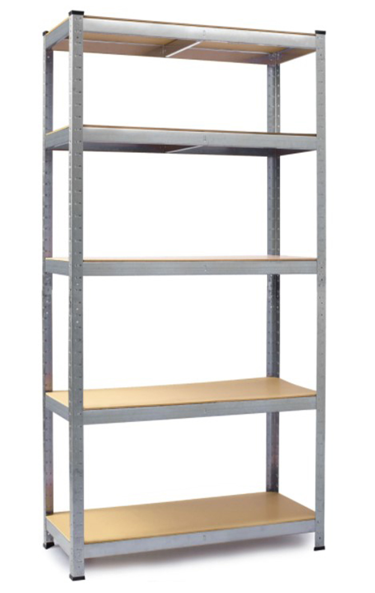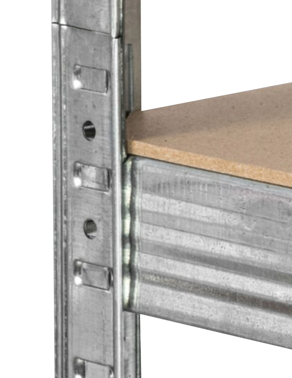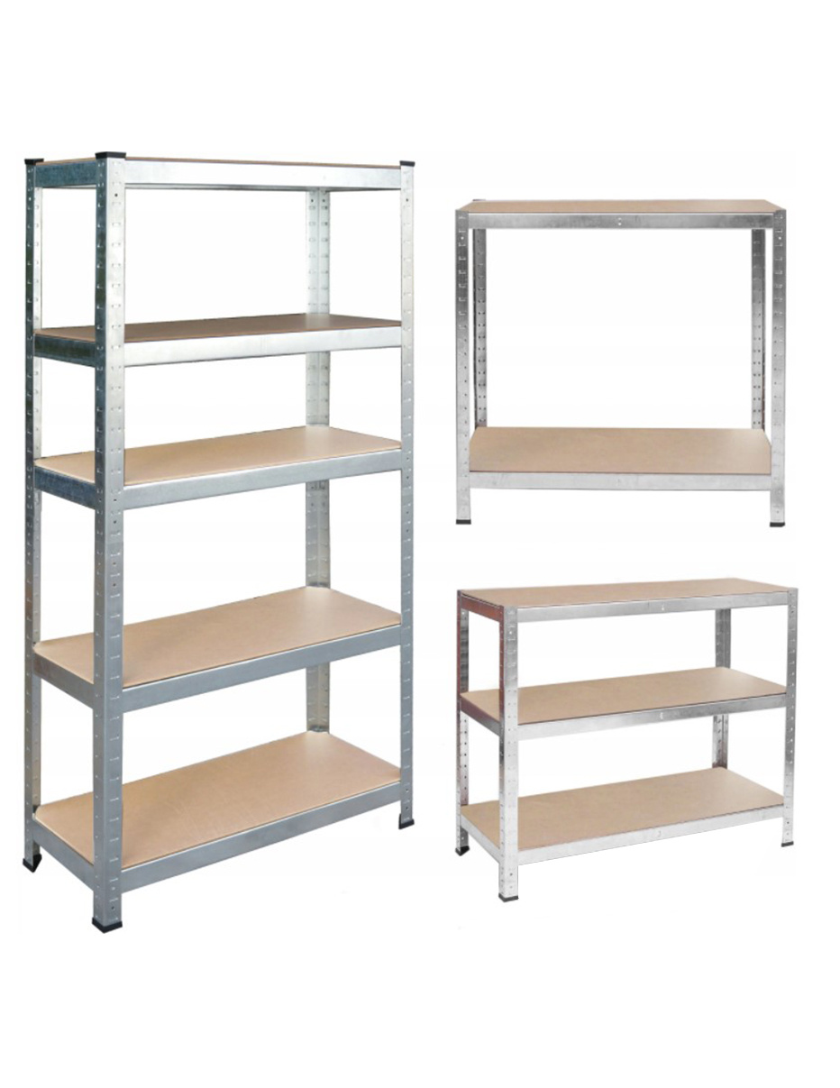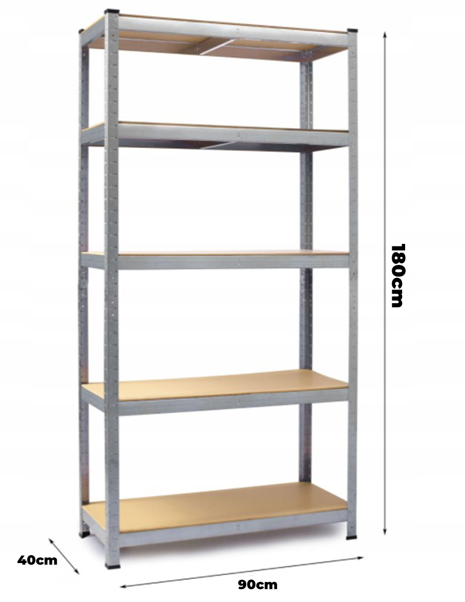 Na wysokości ok. 180 cm znajduje się 5 półek z płyty mdf, które można dowolnie wstawiać. Ocynkowana rama stalowa w kolorze srebrnym gwarantuje stabilność i wysoką nośność ok. 875 kg (ok. 175 kg na półkę).