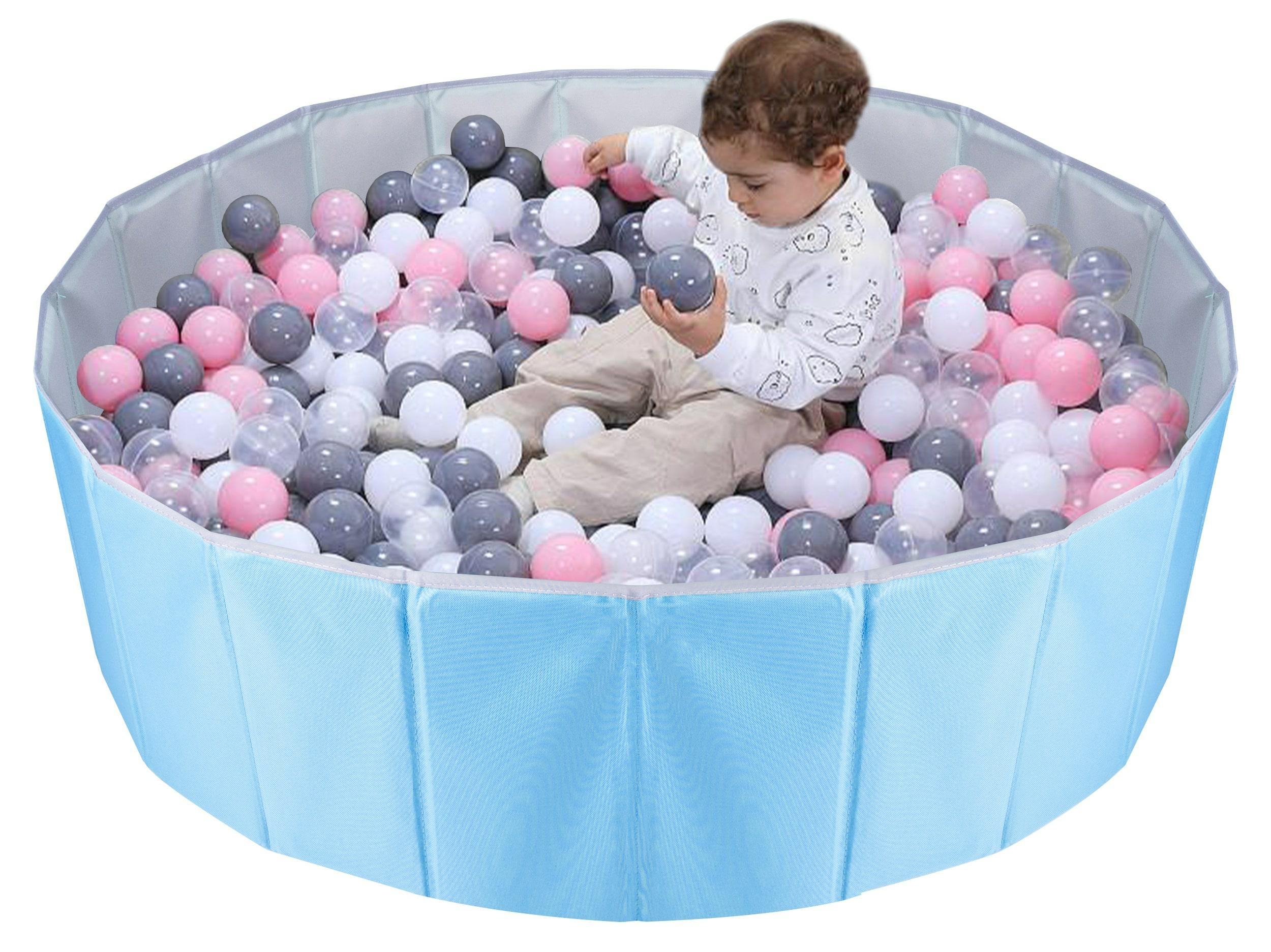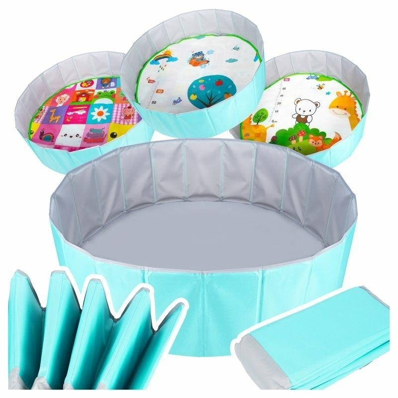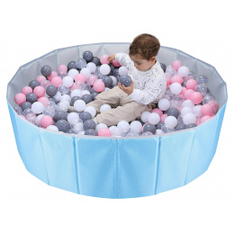 Suchy basen - kojec na piłeczki dla dzieci. Dzięki dużej średnicy oraz wysokim ściankom pozwoli na świetną zabawę bez ryzyka rozsypania i zgubienia piłek. Może służyć jako zabawka ogrodowa lub pokojowa. Po złożeniu kojec zajmuje bardzo niewiele miejsca. Może również służyć jako pojemnik na zabawki. Wymiary po rozłożeniu: średnica: 100 wysokość: 30cm Wymiary złożonego basenu: 34x15,5x11cm Praktyczny pokrowiec na basen w zestawie. Dwustronna mata z kolorowymi nadrukami na dno basenu w zestawie (losowy wzór). Wymiary opakowania: 35x19x19,5cm Ilość szt. na palecie: 108