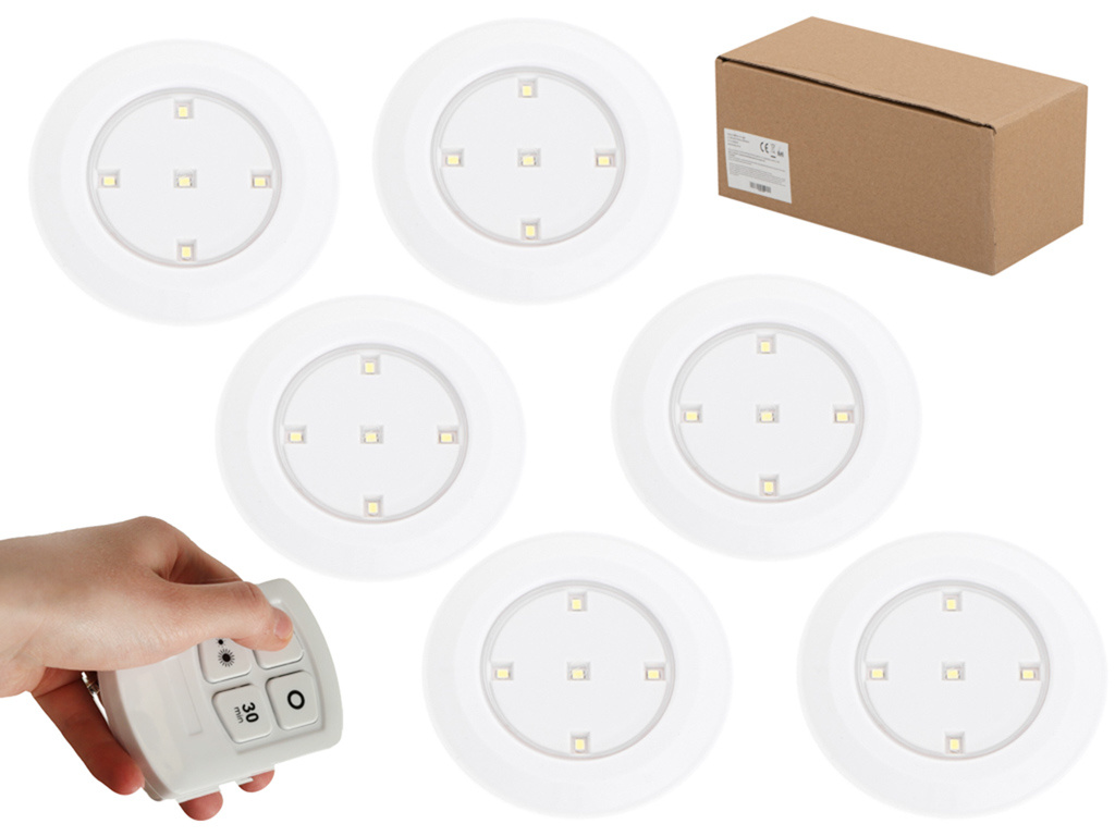 LAMPKA BEZPRZEWODOWA LAMPA LED NA BATERIE 6 SZTUK + PILOT