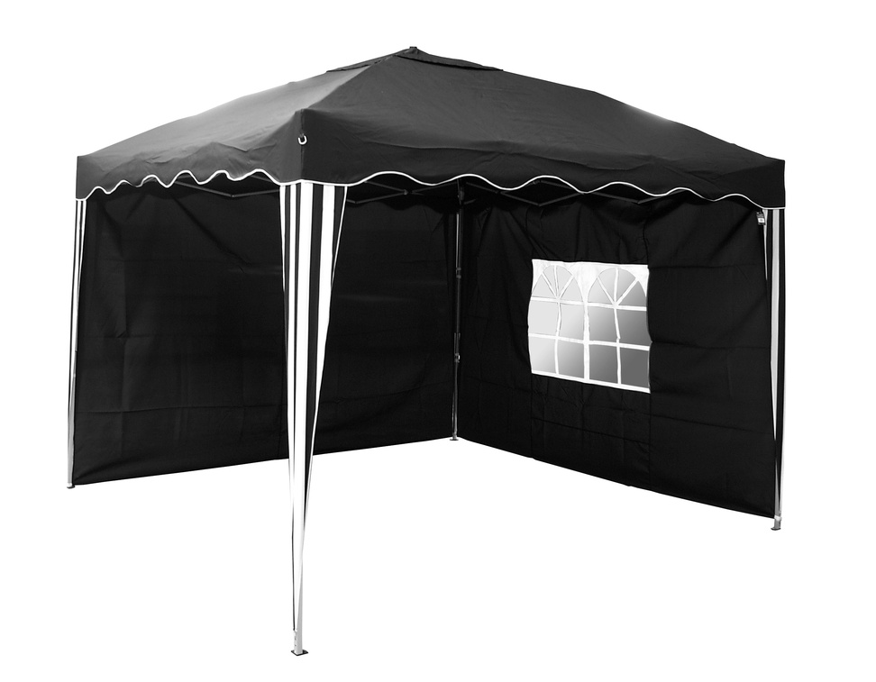 Altana ogrodowa wyposażona w szybko składaną konstrukcję nożycową oraz dwie boczne wodoodporne ściany z jednym oknem.