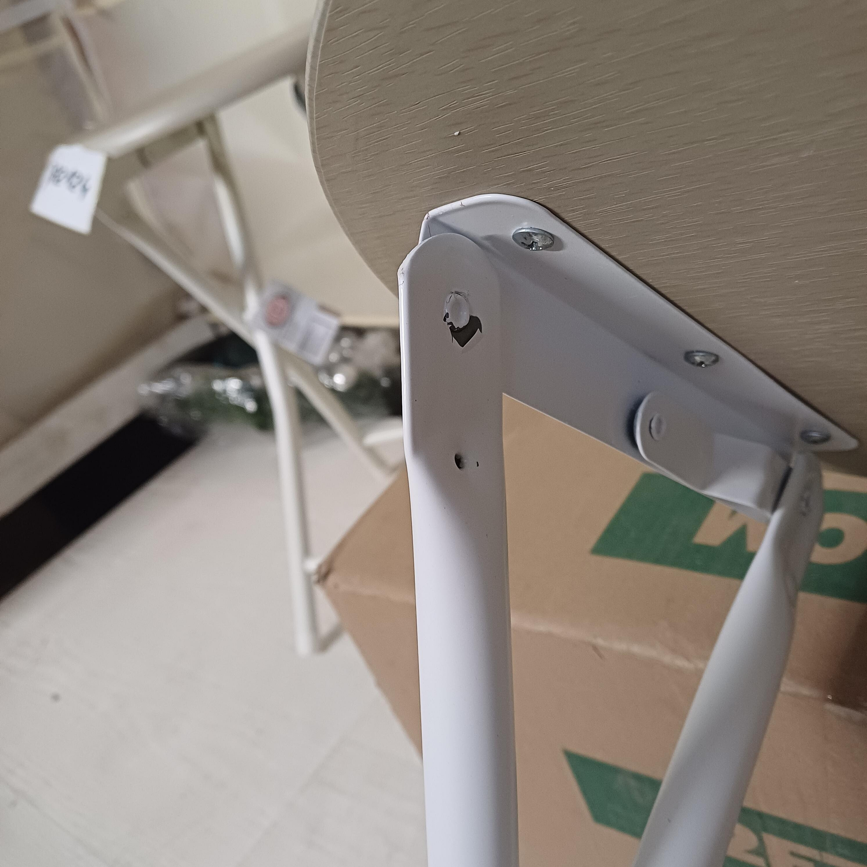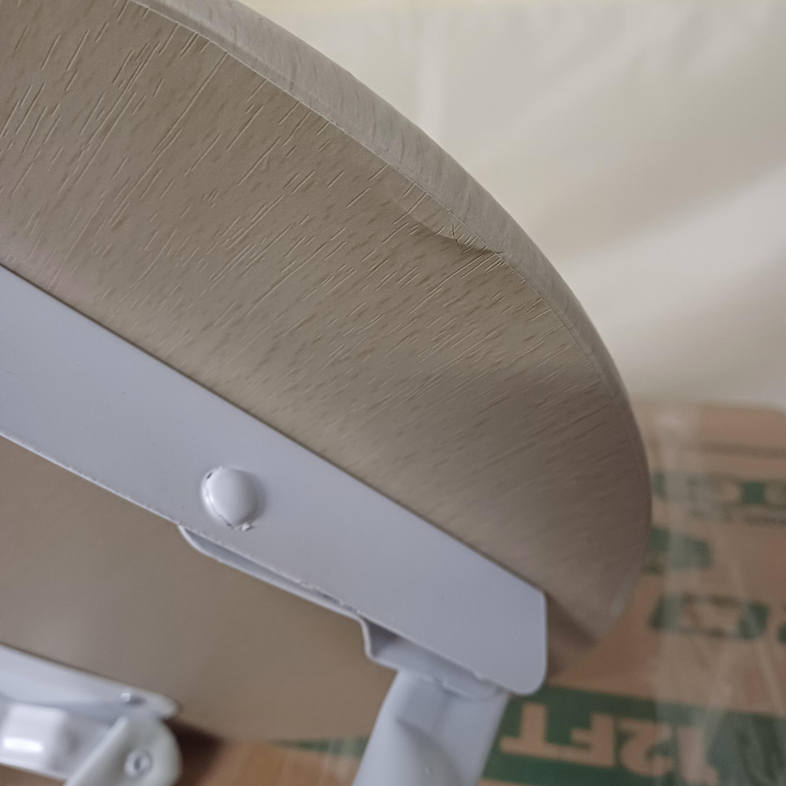 Produkt jest w pełni funkcjonalny, powierzchnia stołka ma zadrapania i w niektórych miejscach łuszczy się fornir.