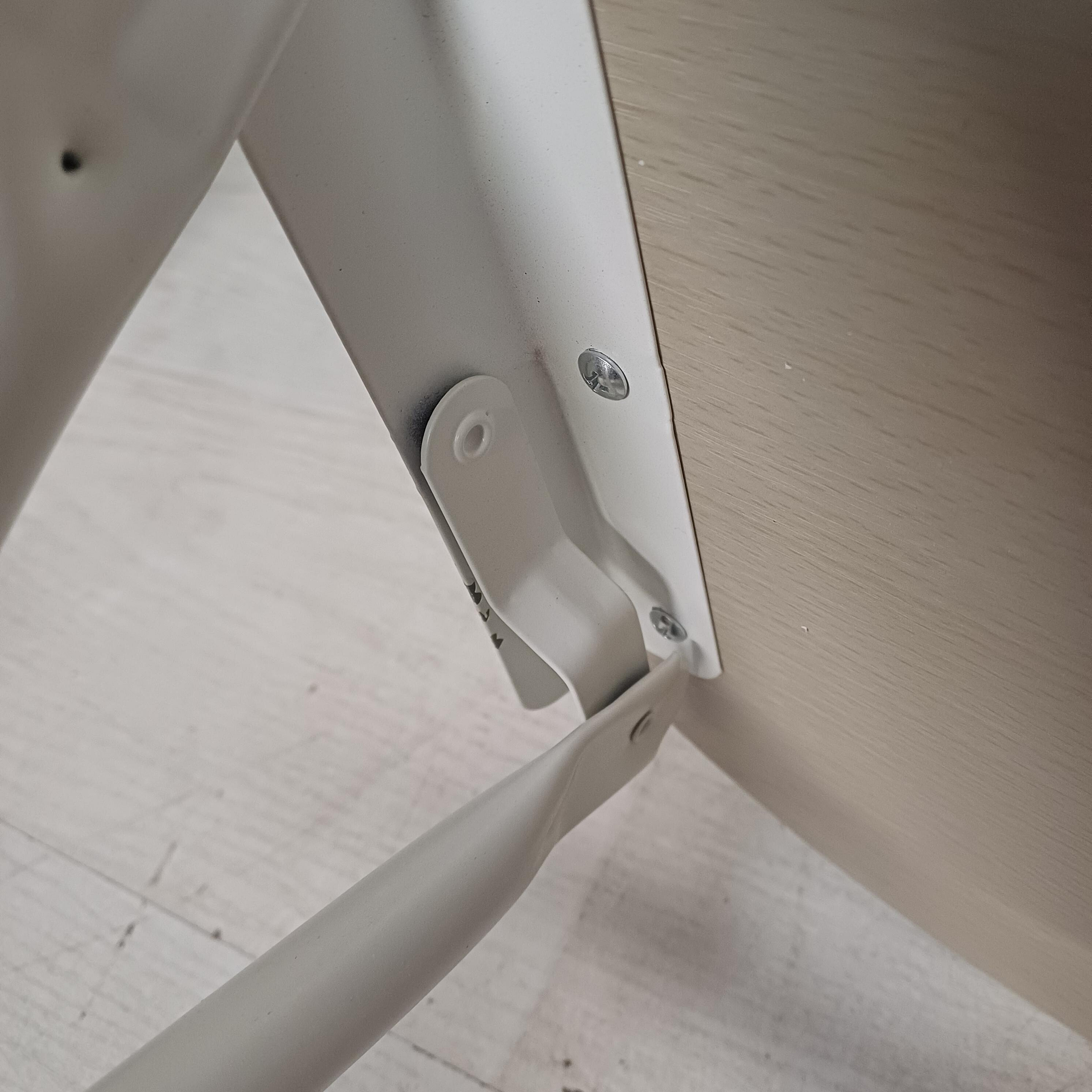Produkt wykazuje wady kosmetyczne w postaci zadrapań i częściowo łuszczącej się okleiny. Te wady nie wpływają na funkcjonalność krzesła.