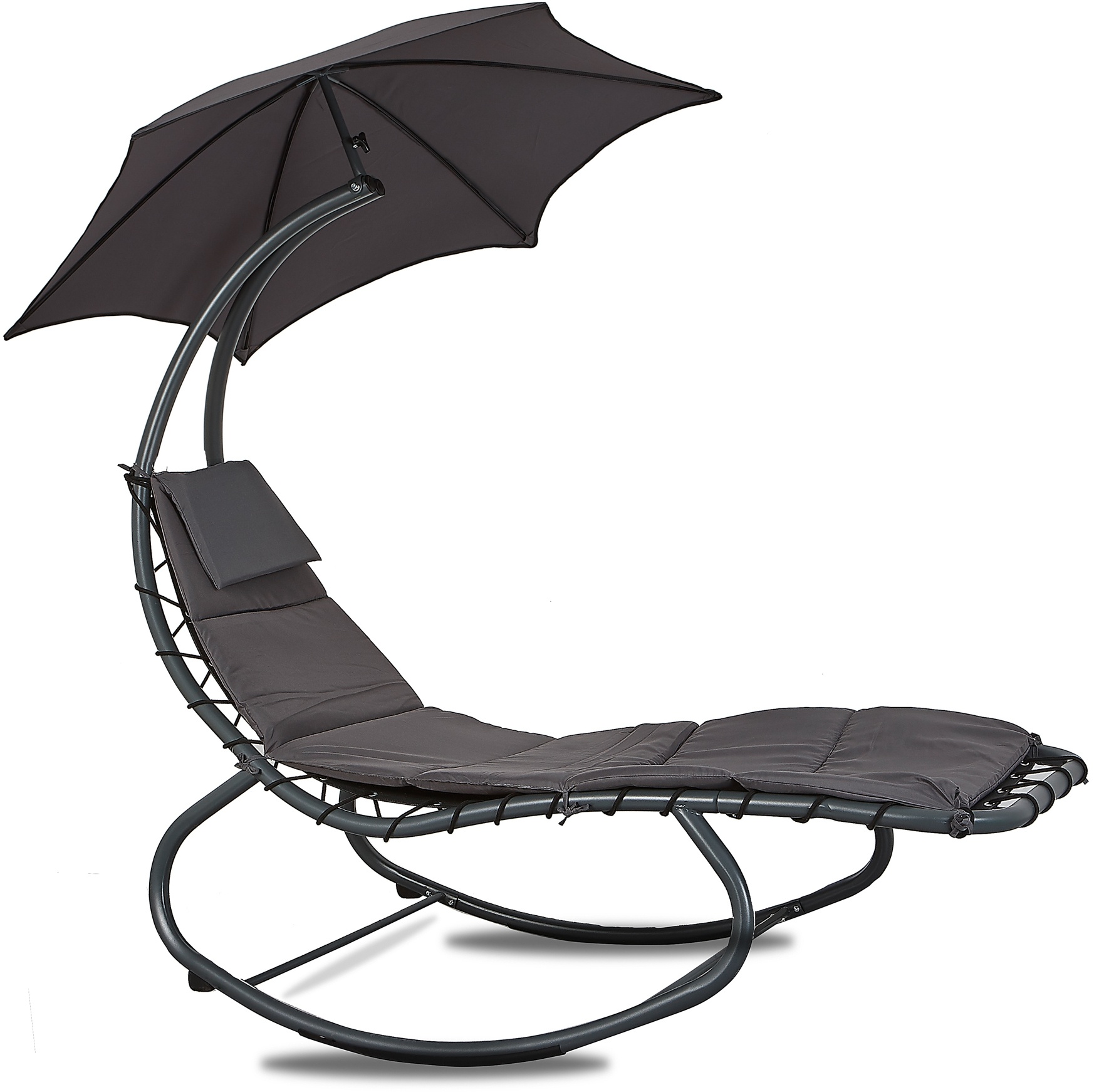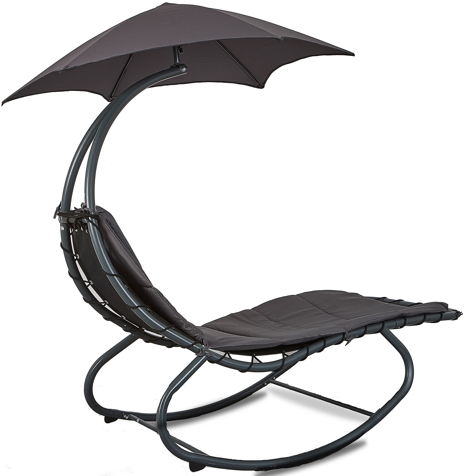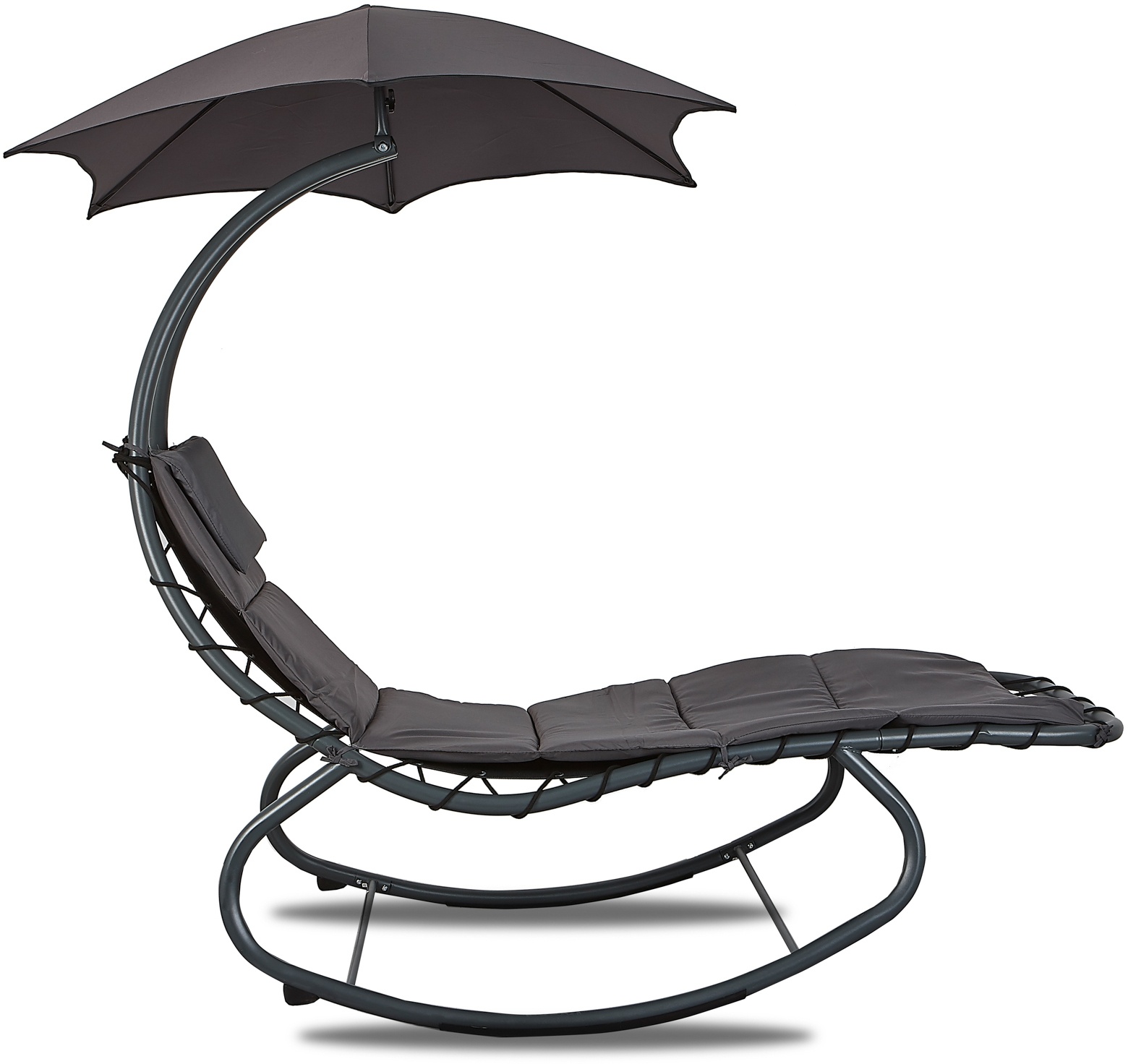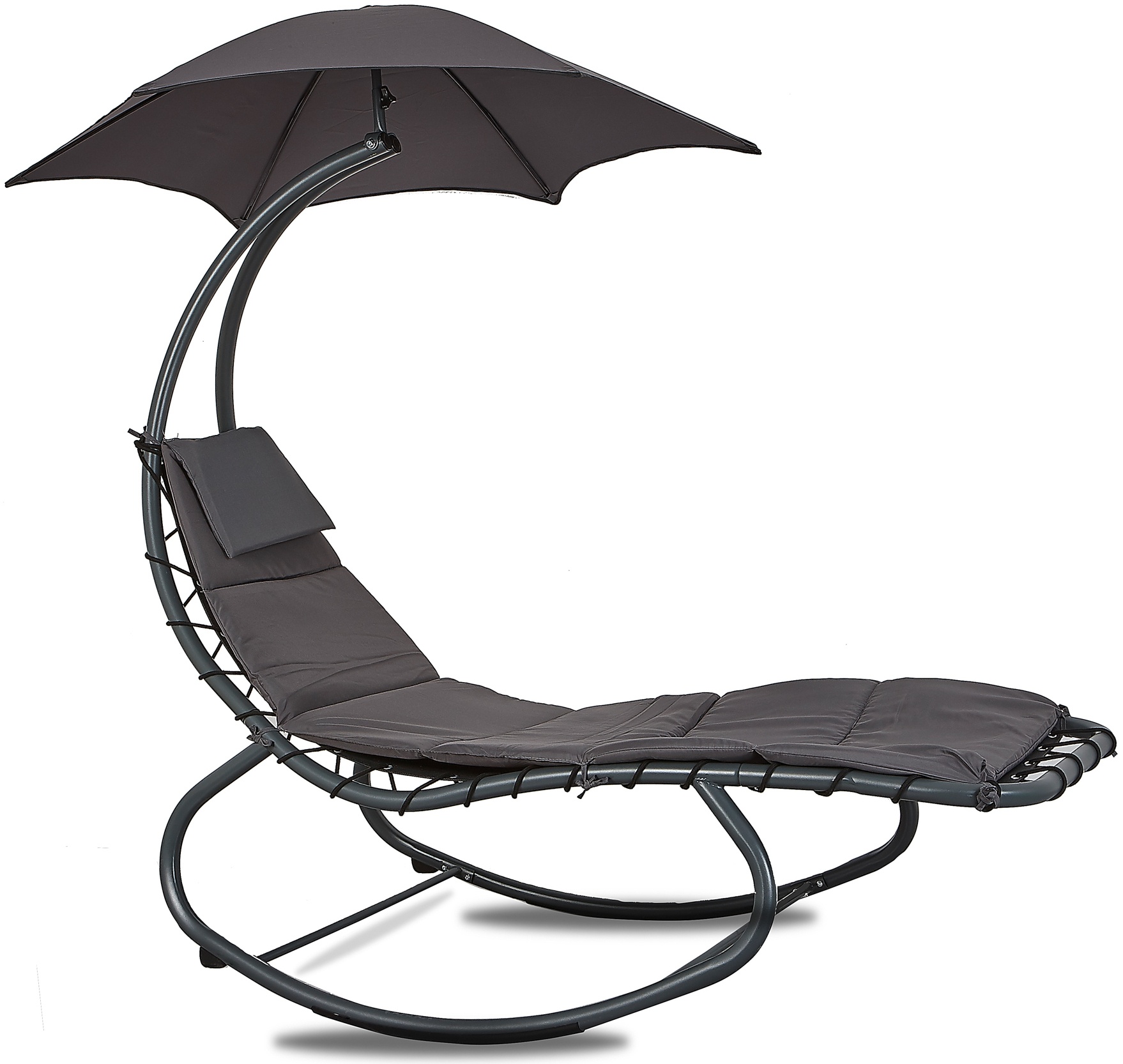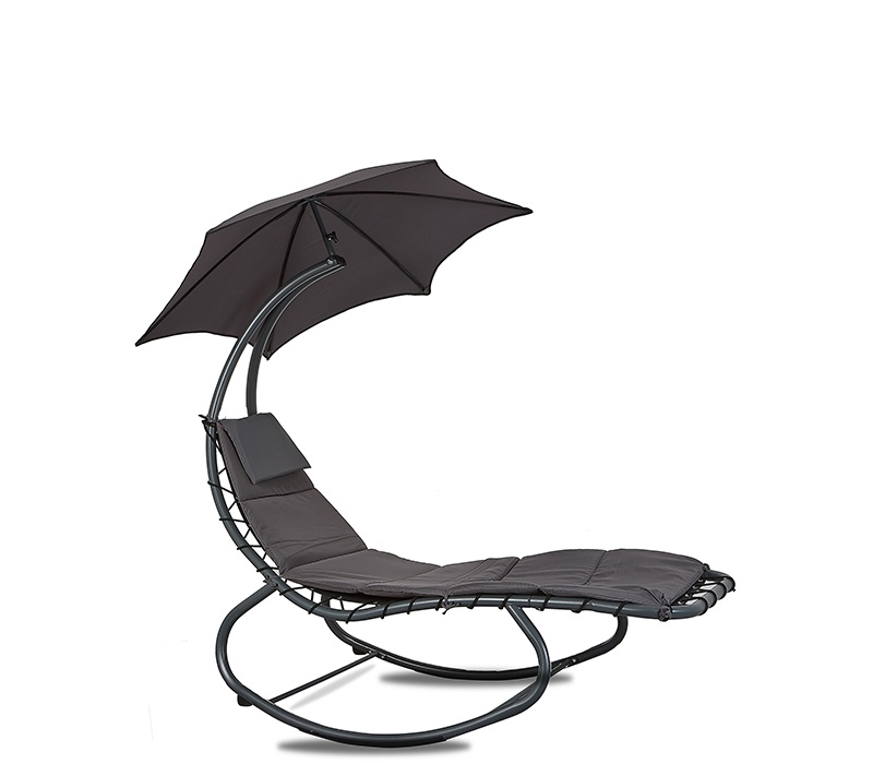 Stylowy fotel bujany z parasolem to najlepszy wybór na relaks przy basenie, w ogrodzie lub na tarasie.