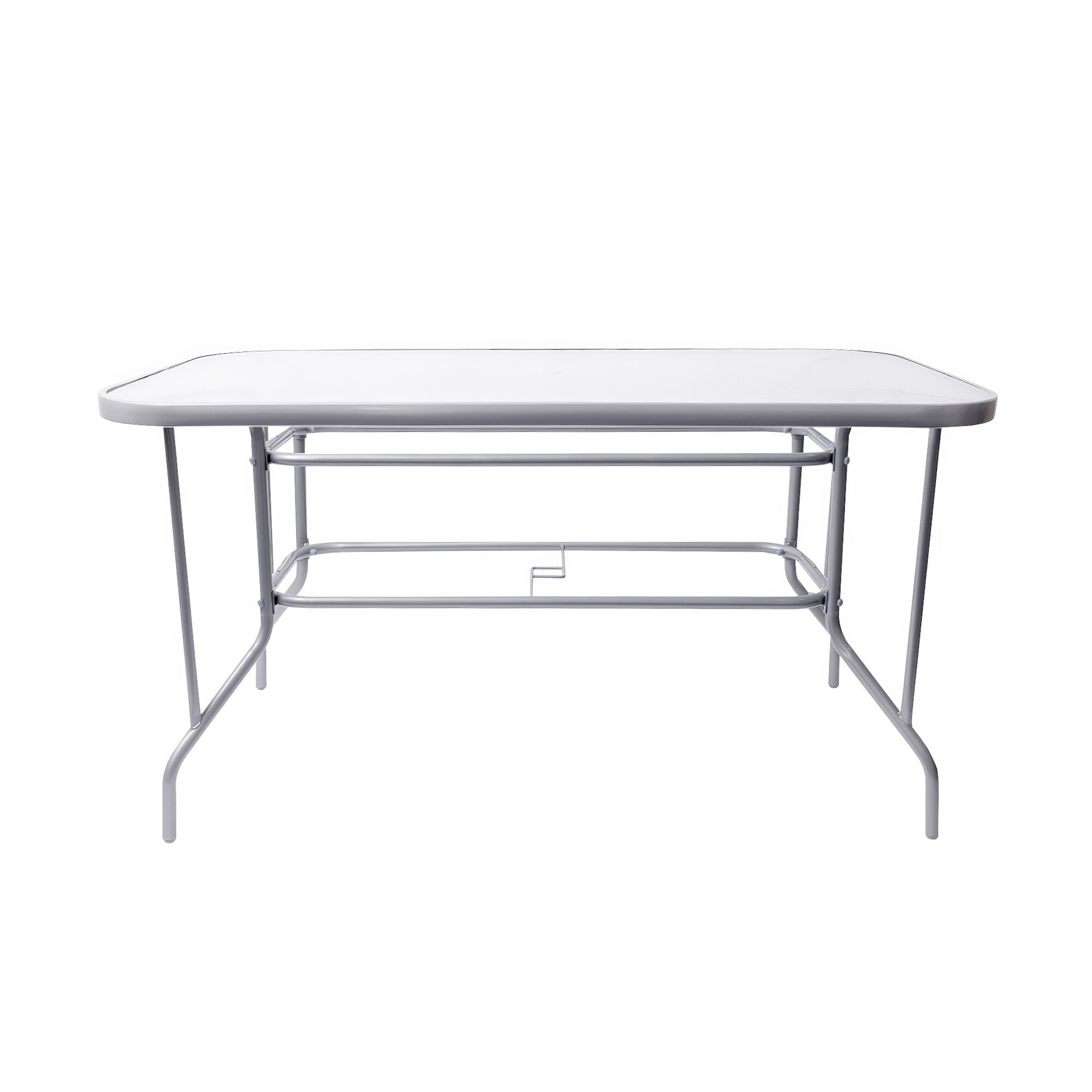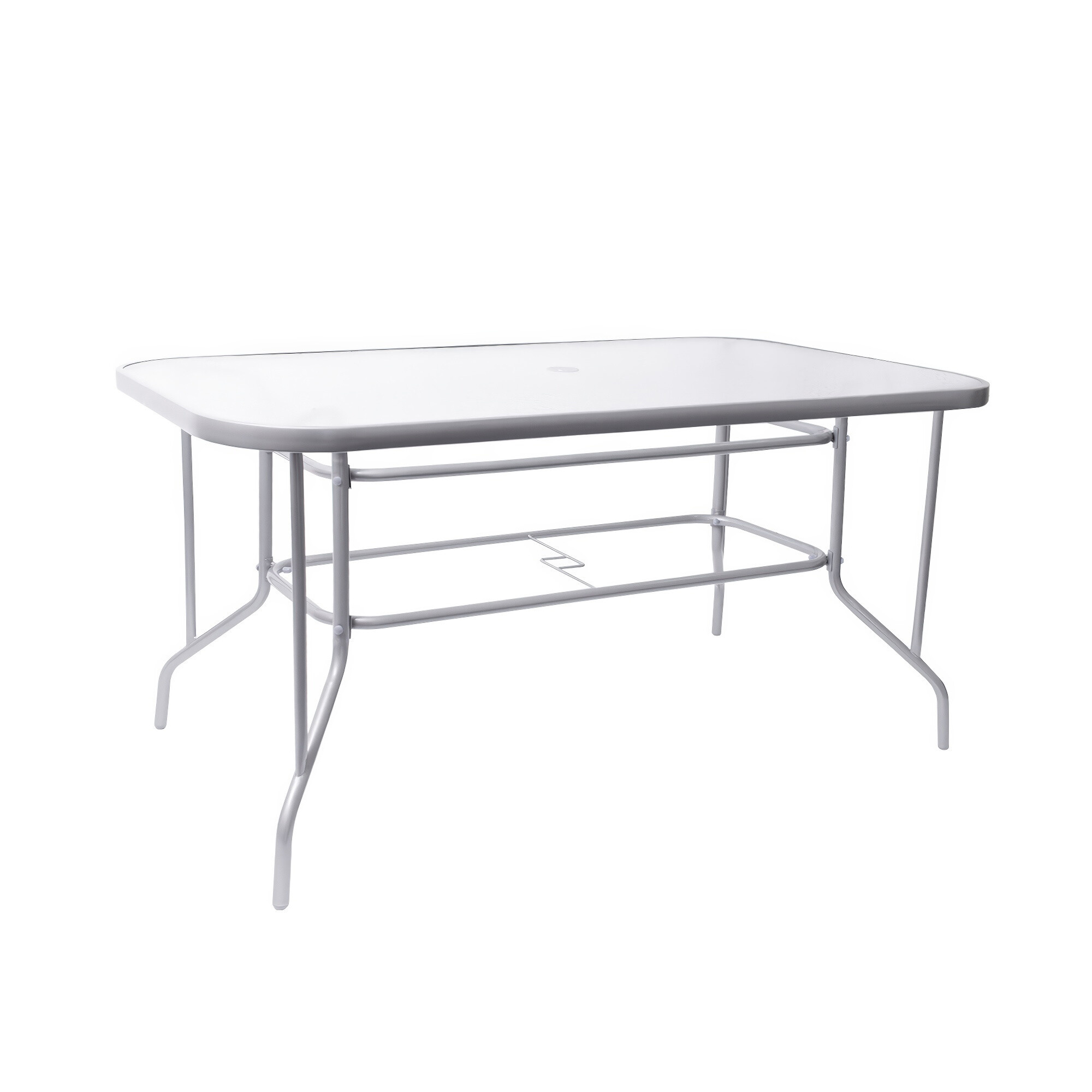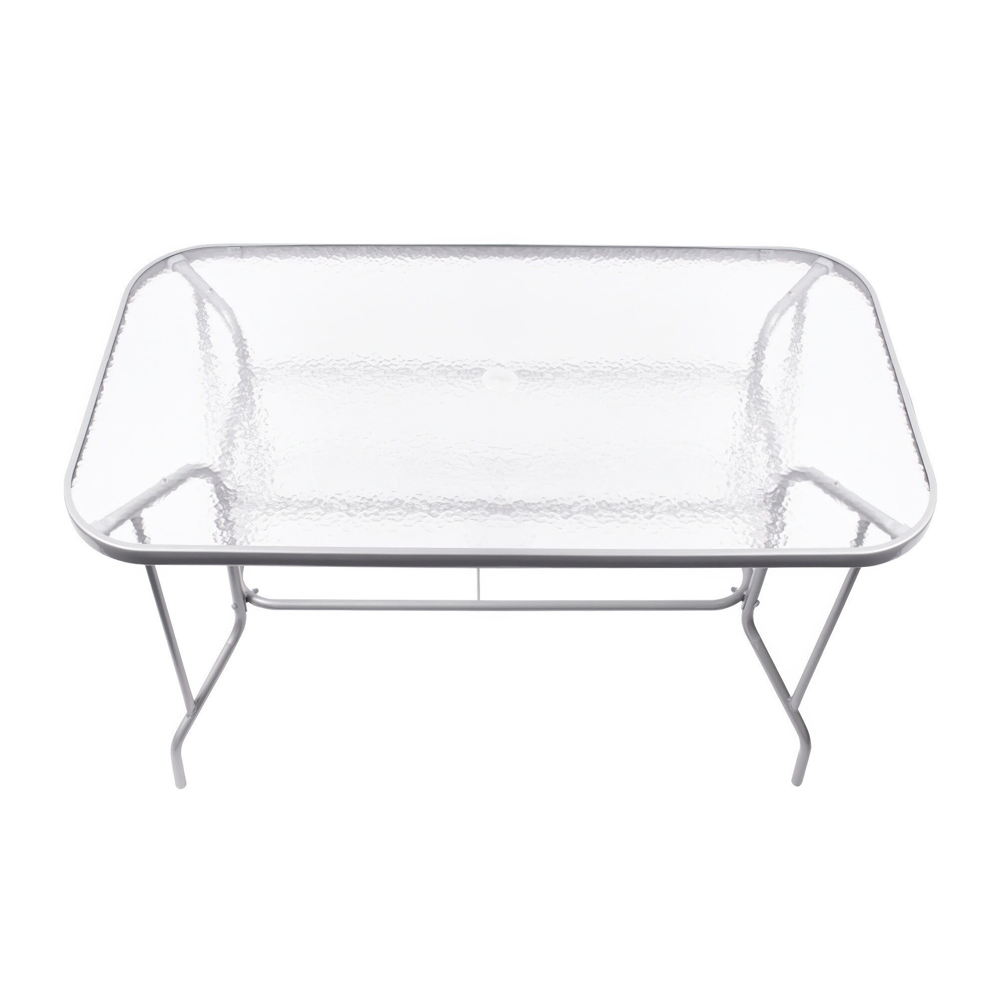 Stół ogrodowy MILANO z solidną metalową ramą i blatem z teksturowanego szkła w nowoczesnym wzornictwie, odpowiedni do ogrodu, tarasy, kawiarnie, altany, balkony czy plaże.