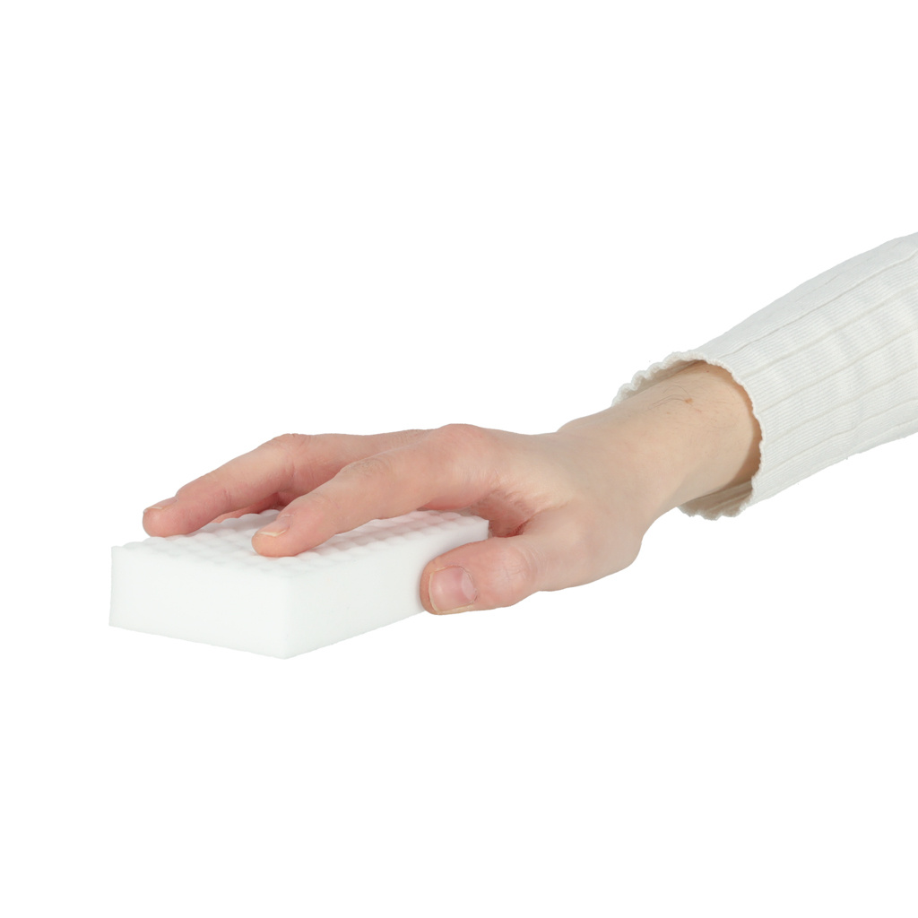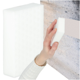 Magia ukryta w małej gąbeczce z melaminy. Czyści uporczywe zabrudzenia bez detergentów, wystarczy ją tylko zwilżyć odrobiną wody. Poradzi sobie z zaciekami na szafkach, śladami po długopisie, a nawet z plamami na tapicerce. Wysoka skuteczność gąbeczki wynika z delikatnych właściwości ściernych. Zużywa się w miarę czyszczenia niczym gumka do ściernia. Nie potrzebujesz chemii do skutecznego czyszczenia. Wystarczy odrobina wody by uaktywniła swoje magiczne właściwości. Nie jest to taka zwykła magiczna gąbeczka. Z jednej strony jest gładka z drugiej posiada delikatne wypustki, które ułatwią mycie chropowatych powierzchni. Doskonale nadaje się do powierzchni odpornych na wilgoć i ścieranie. Idealna do mycia ścian, szafek, tapicerki, plastiku, szkła i karoserii.
