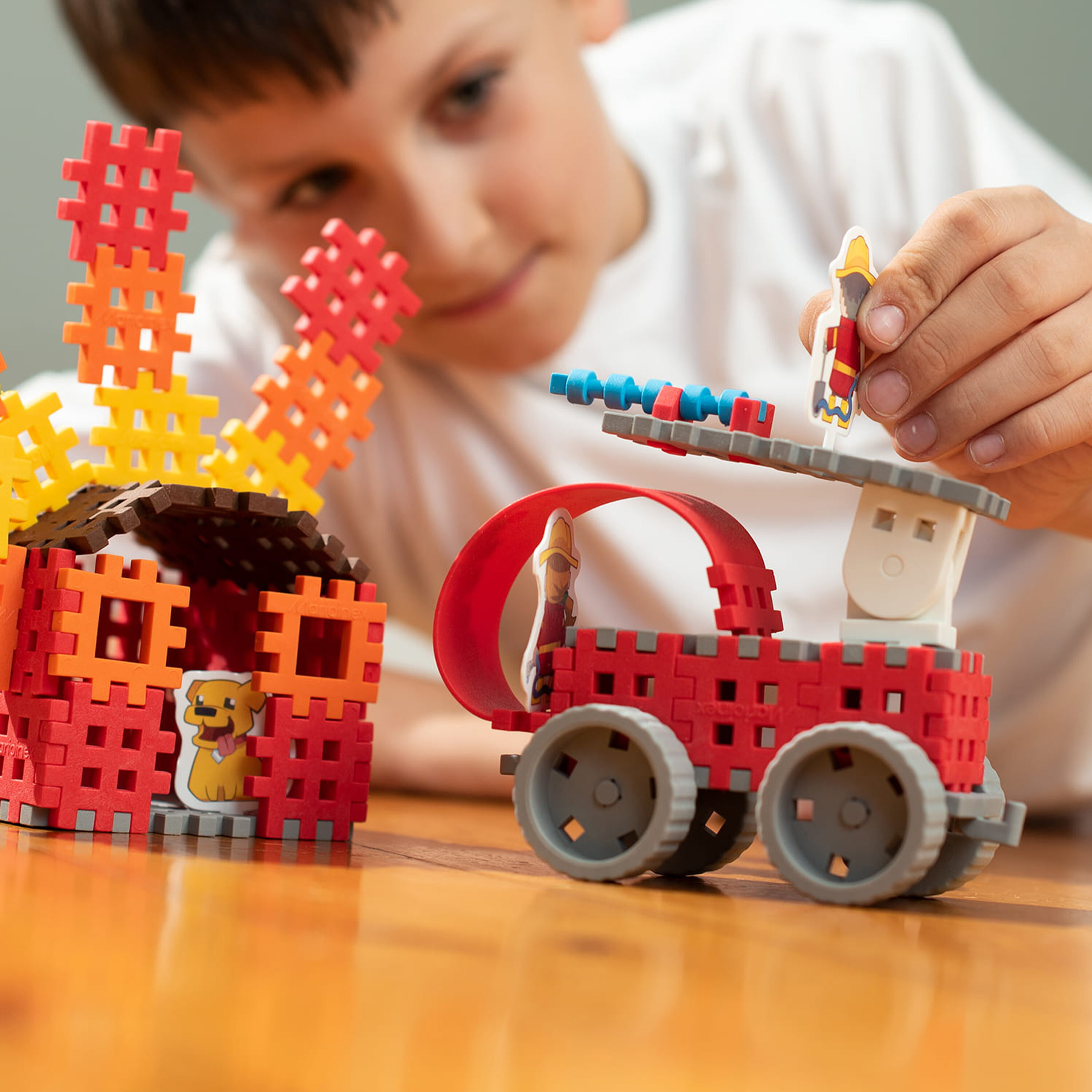 Klocki, które pomagają uratować świat! Dzięki nim dzielni, mali strażacy nie tylko ugaszą pożar, ale również uratują od płomieni słodkiego pieska. Podczas zabawy Twoje dziecko skonstruuje płonący budynek i wóz strażacki, a w zestawie czeka na niego również kilka oryginalnych superbohaterów. To brygada nieustraszonych strażaków, zawsze gotowych do akcji! Zestaw nie tylko rozwija dziecięcą wyobraźnię i zdolności manualne, ale również pozwala na wcielanie się w role i uczy logicznego myślenia.
