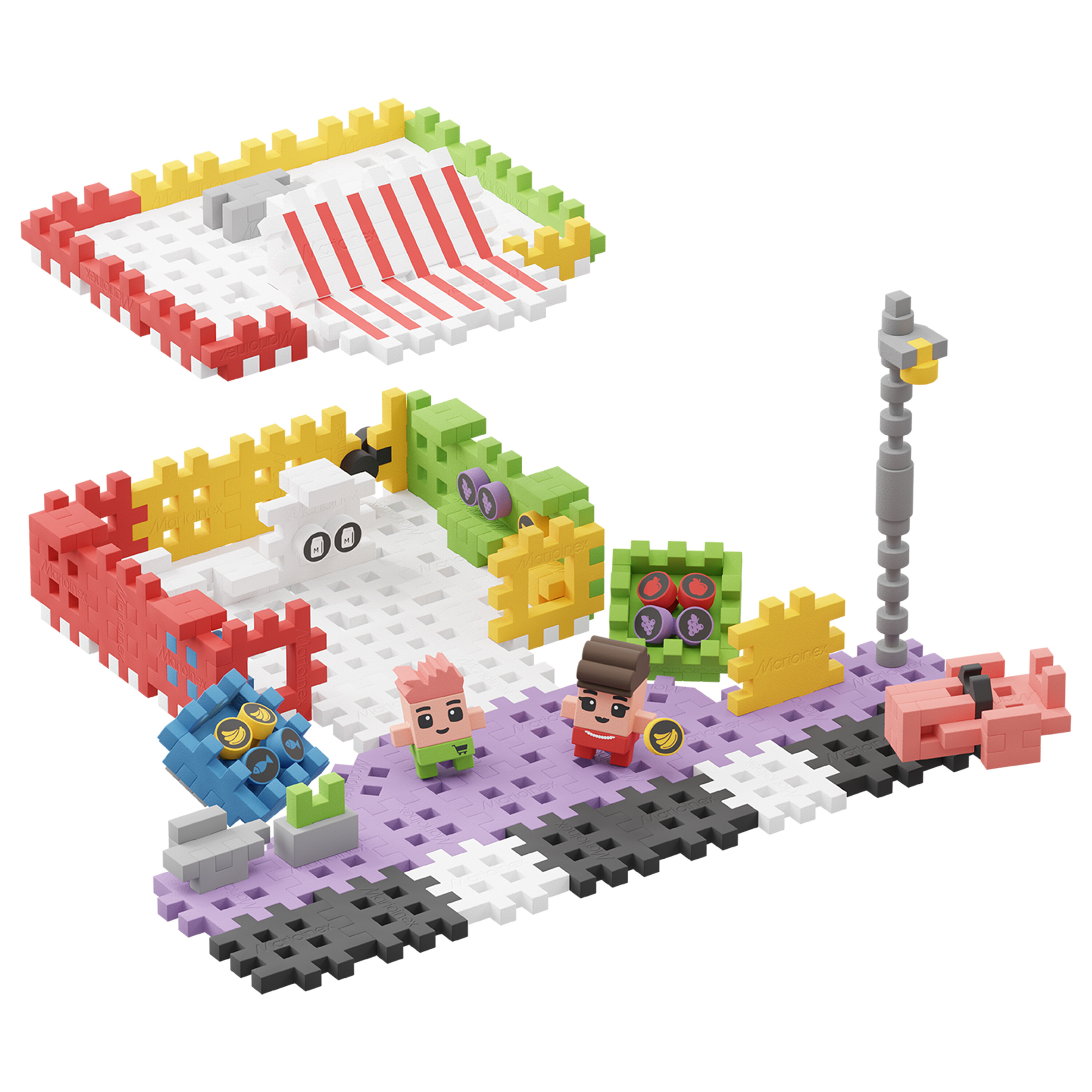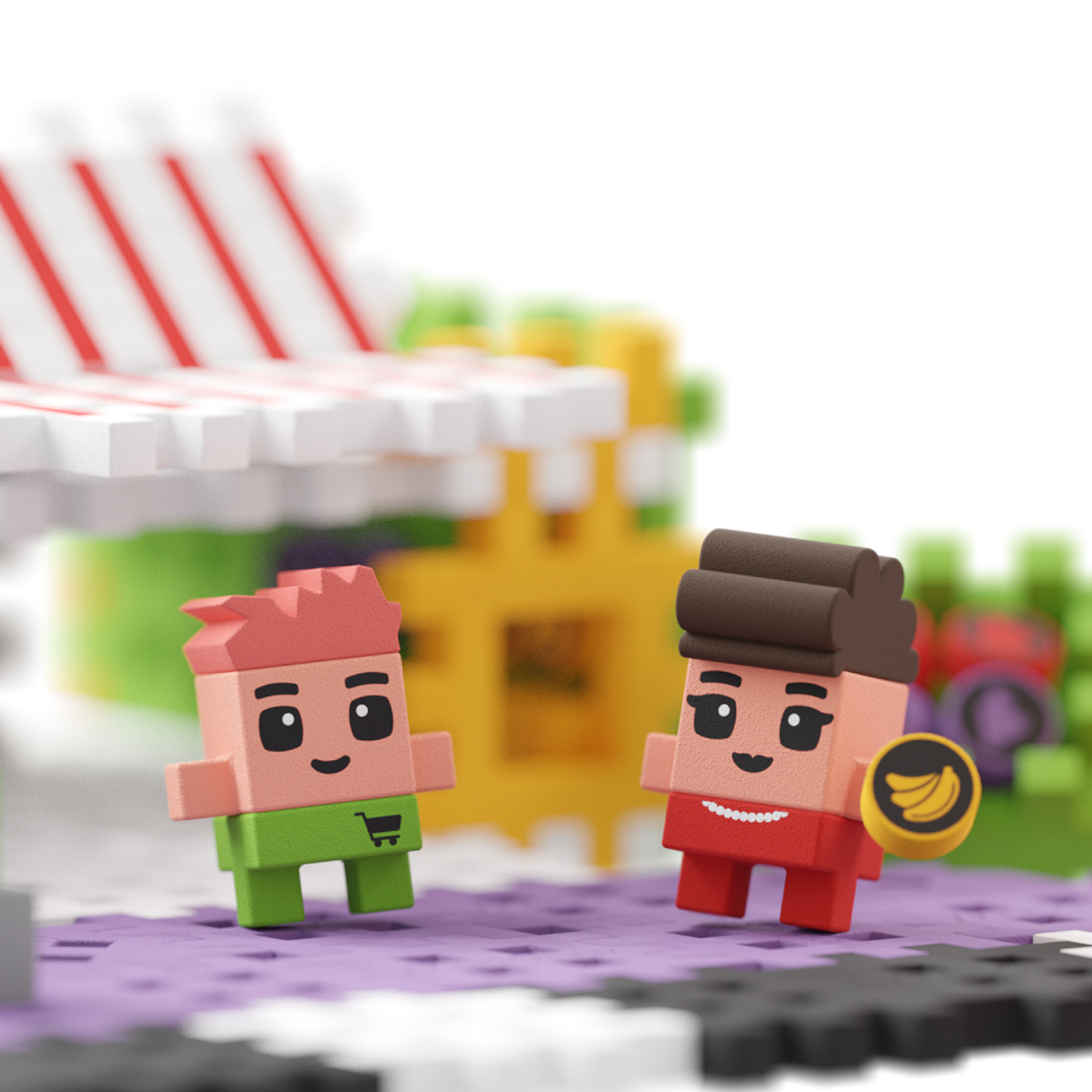 Zestaw Sklepik to aż 148 klocków i dwie oryginalne postaci, z których jedna w pocie czoła zaopatruje mieszkańców w świeżą żywność. Zbuduj zestaw według instrukcji i połącz go z innymi zestawami z serii Waffle City, które wspólnie sprawią, że miasteczko ożyje. Oczywiście nie bez pomocy Twojej wyobraźni! A kiedy wraz z pociechą wpadniecie na nowy pomysł, możecie skonstruować z elementów zestawu zupełnie nową, fascynującą budowlę.