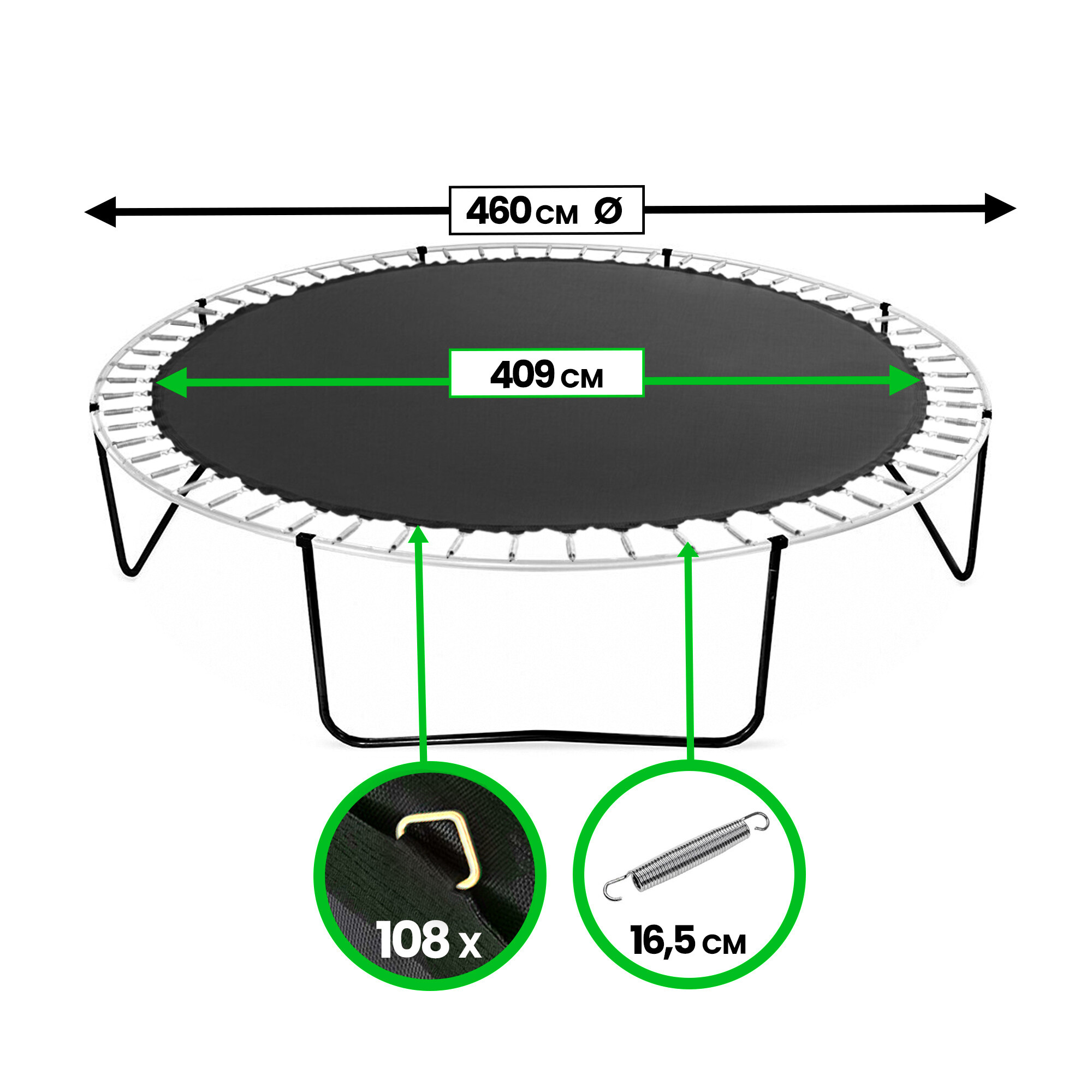Wymienna trampolina do trampolin o wymiarze 460 cm na 108 oczek