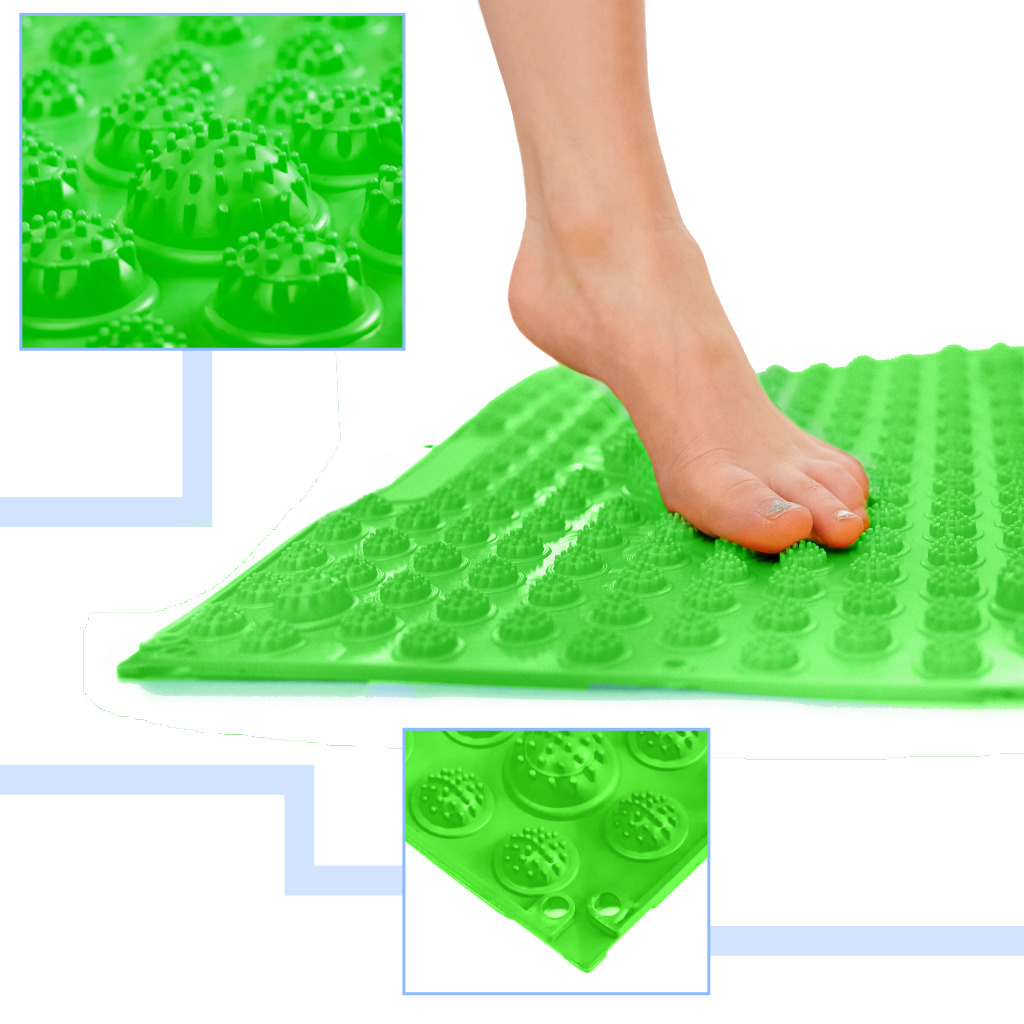 Na kolorowej macie zajdziesz mnóstwo wypustek, których zadaniem jest pobudzić krążenie krwi w stopach.