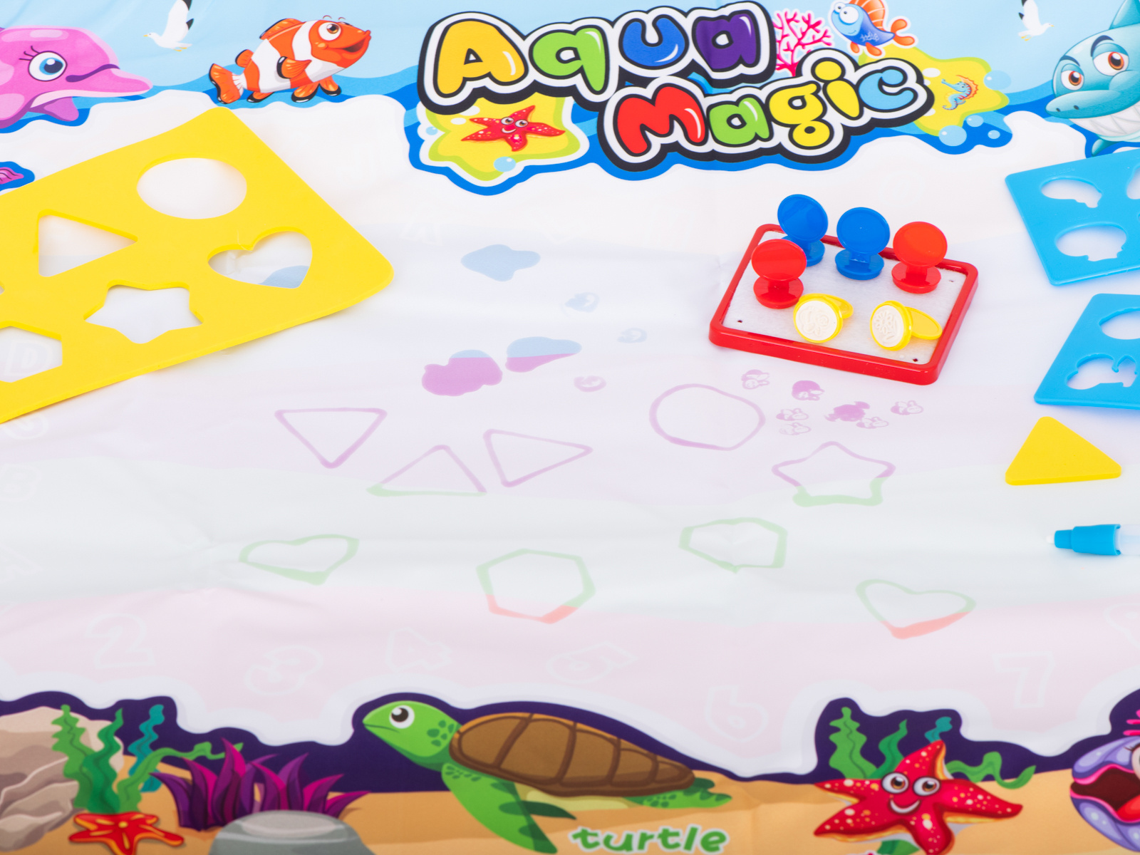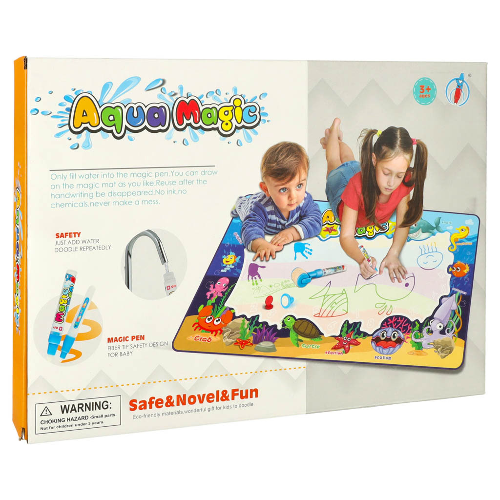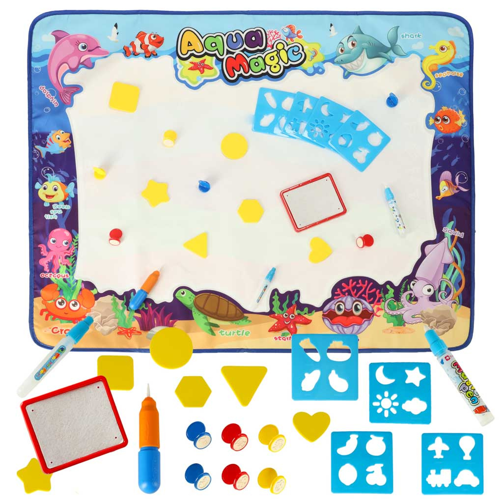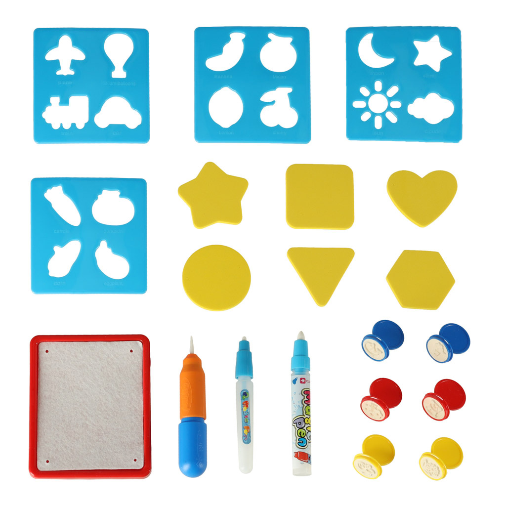 Mata po zmoczeniu ją wodą, odkrywa kolorowy obrazek. Dzięki dołączonym do zestawu szablonom można na jej powierzchni odrysowywać różne kształty. Dodatkowo znajdują się tu stempelki, które po namoczeniu wodą można odciskać na powierzchni.