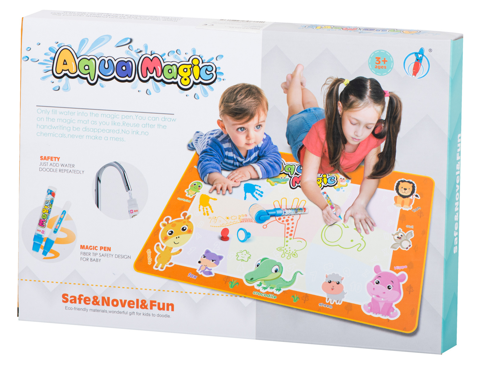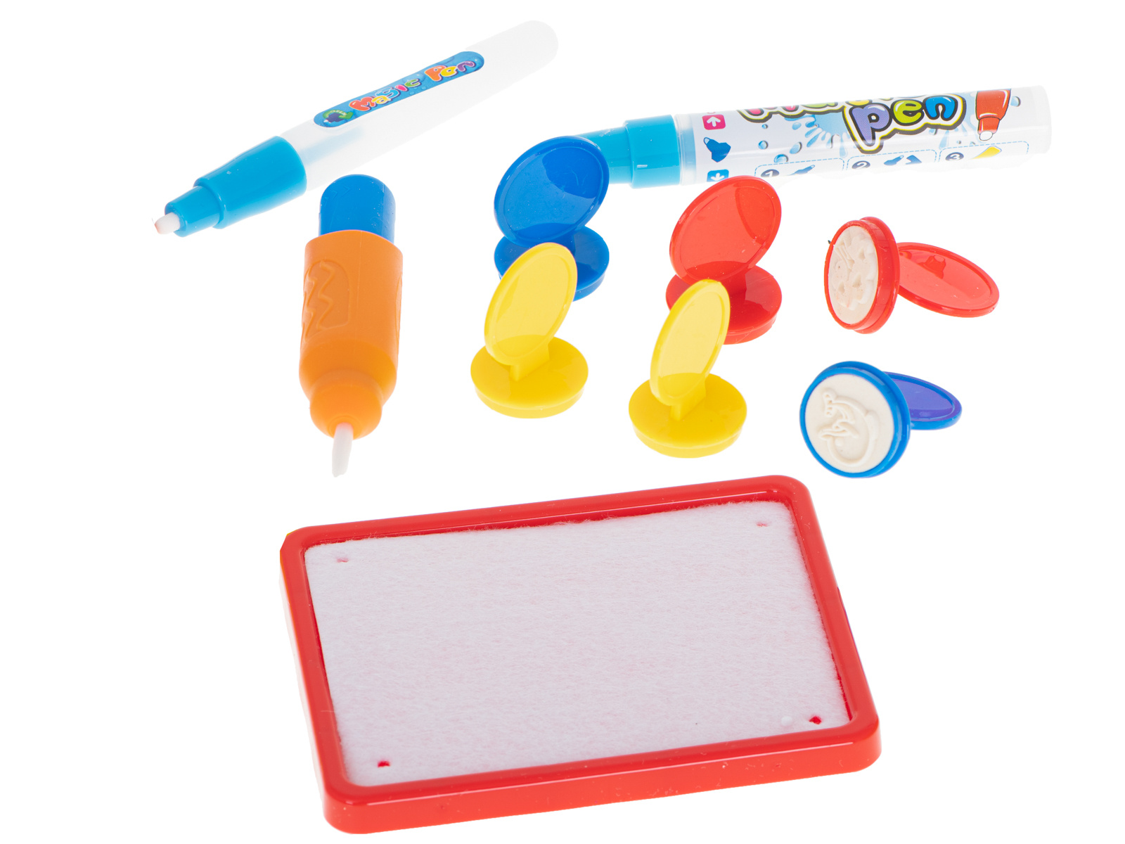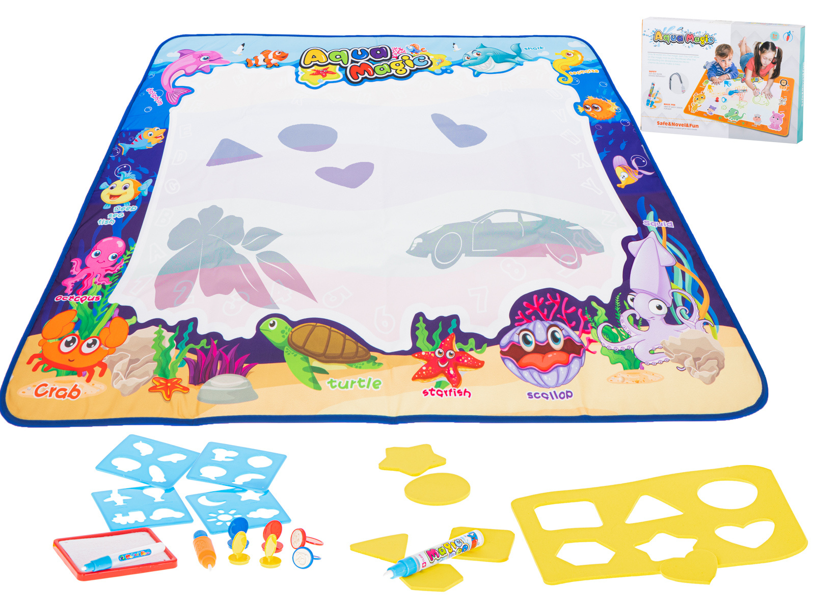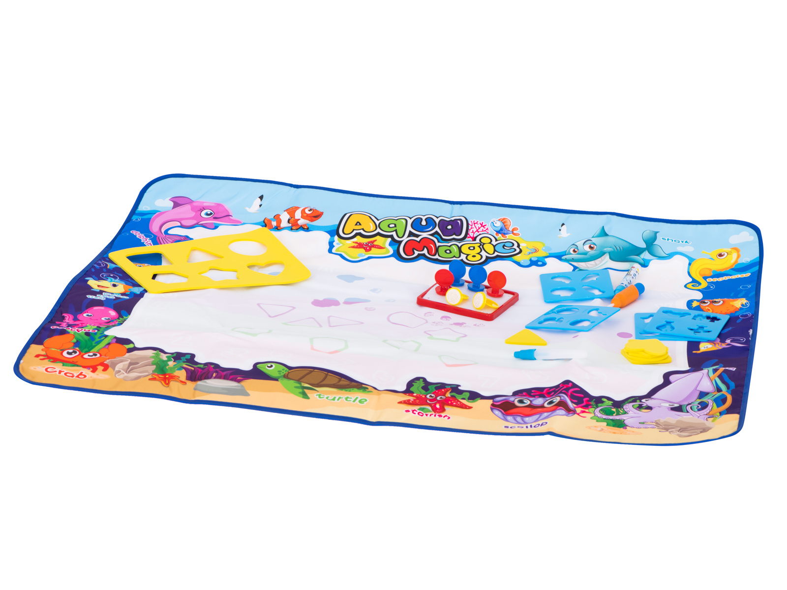 Mata po zmoczeniu ją wodą, odkrywa kolorowy obrazek. Dzięki dołączonym do zestawu szablonom można na jej powierzchni odrysowywać różne kształty. Dodatkowo znajdują się tu stempelki, które po namoczeniu wodą można odciskać na powierzchni.